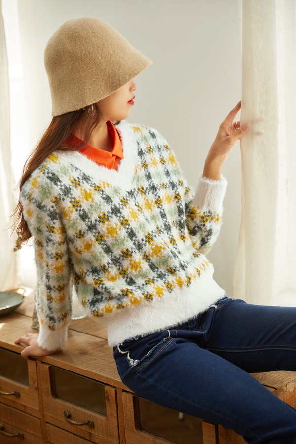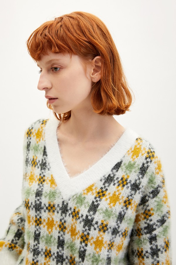 URBAN REVIVO 格纹绒感毛衣 9642