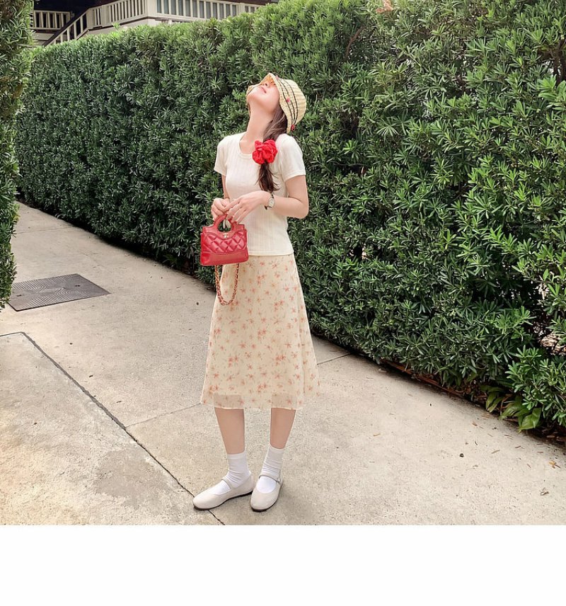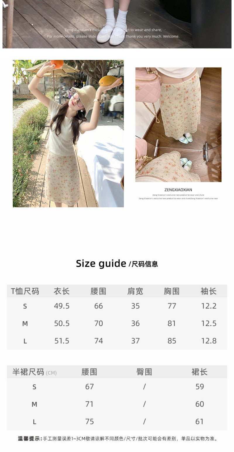 <曾小咸推荐>韩系短袖t恤女碎花裙半身裙
