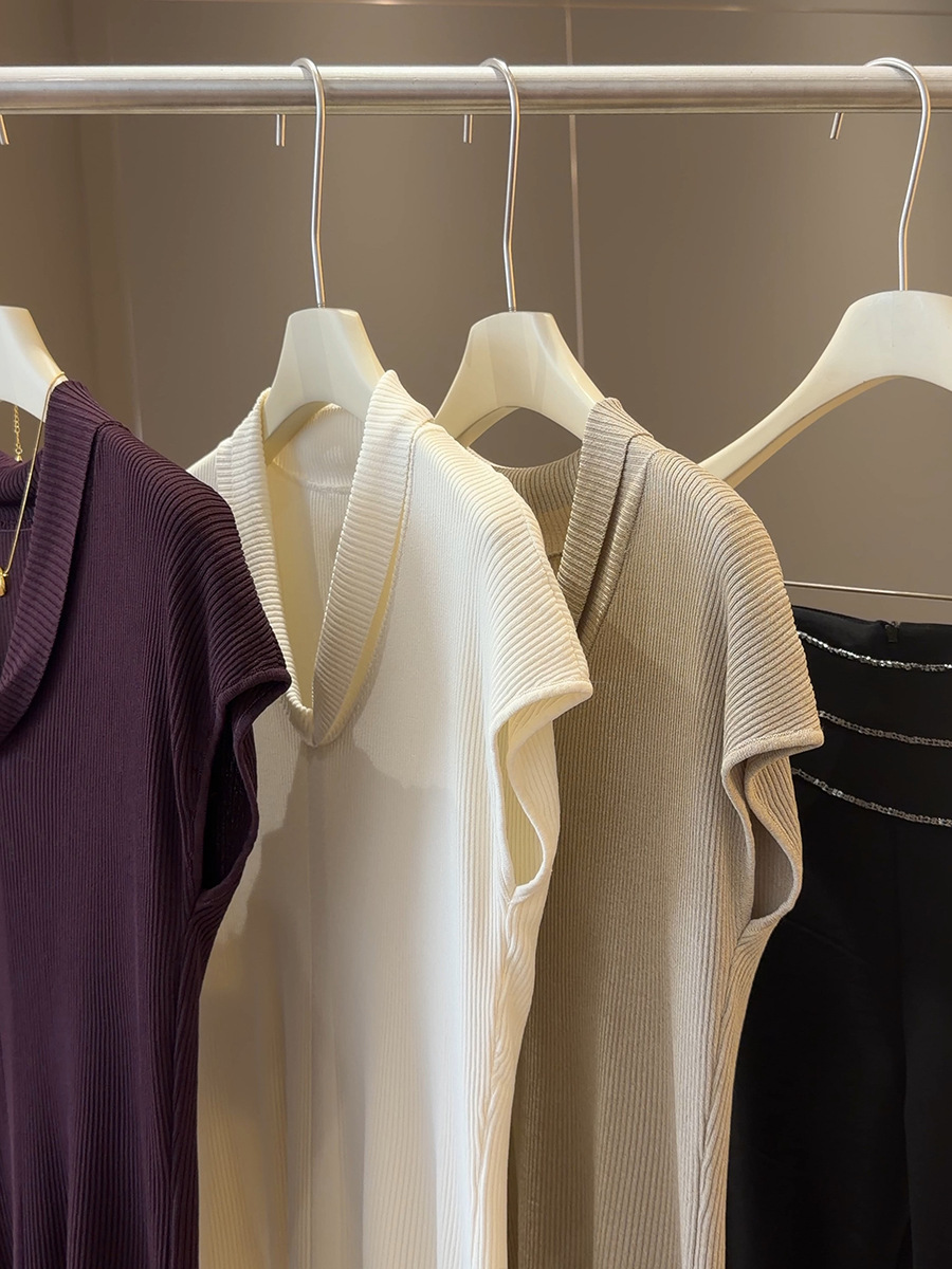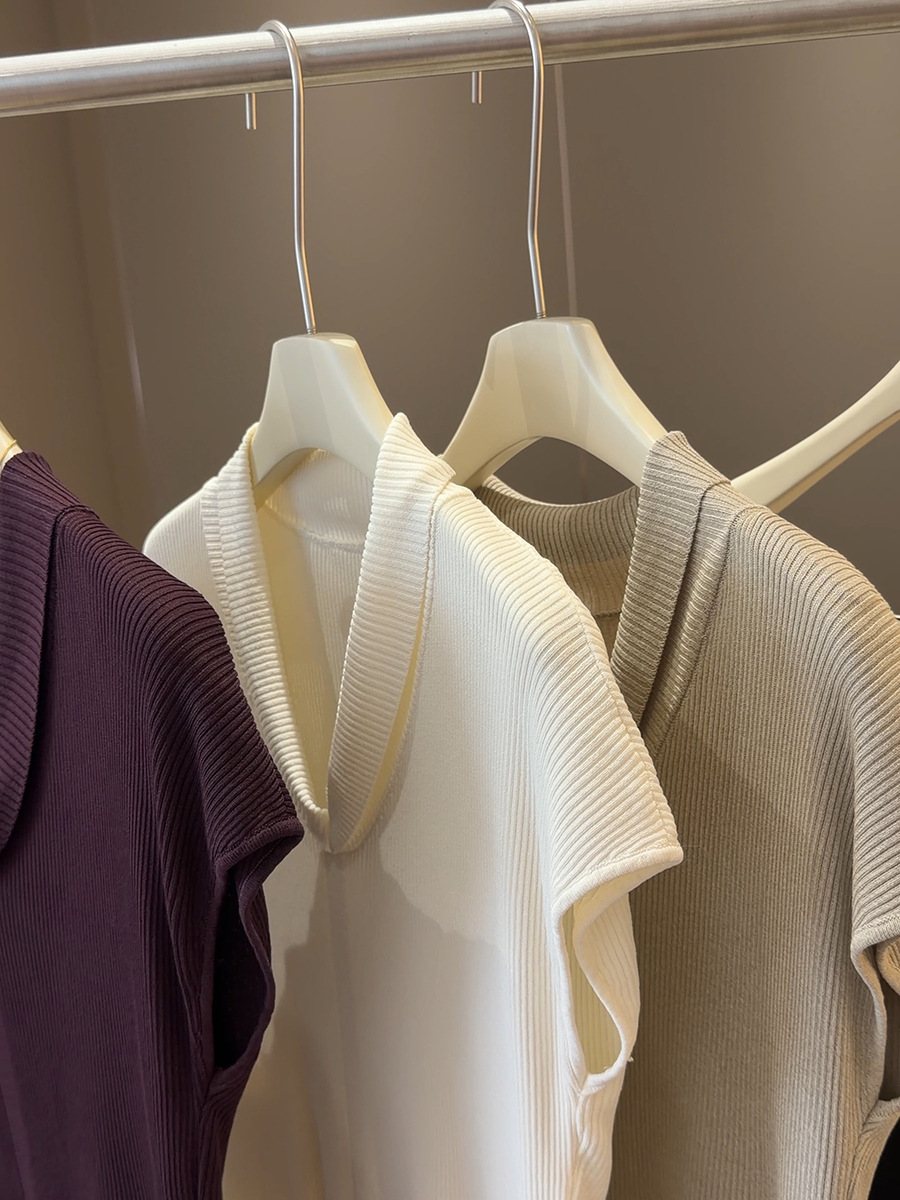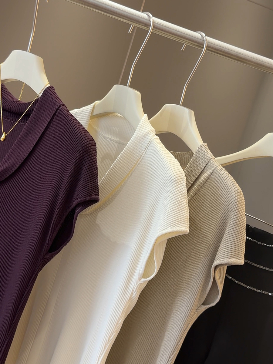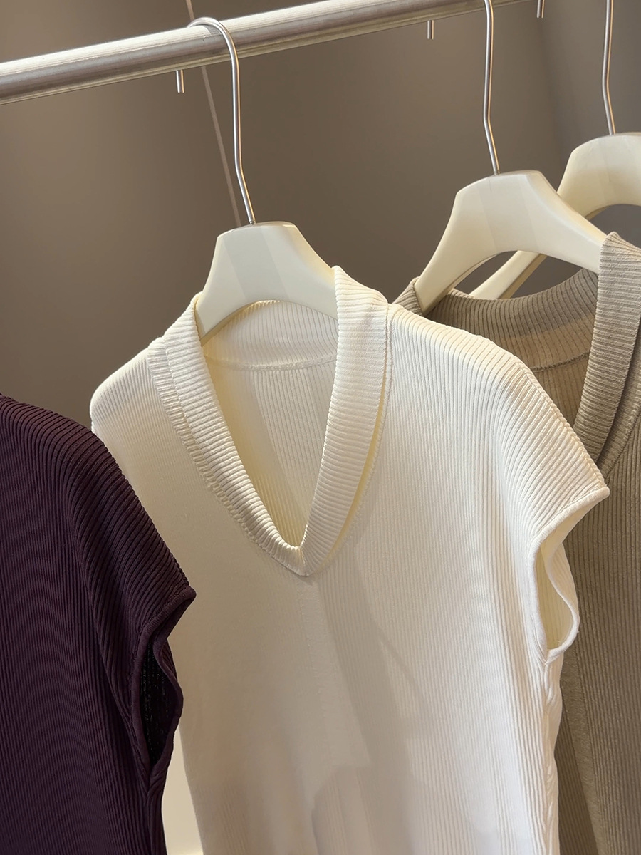 法式气质V领短袖 针织衫 女夏季新款修身显瘦百搭纯欲冰丝坑条上衣