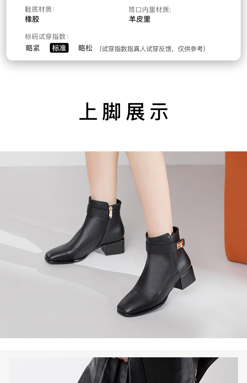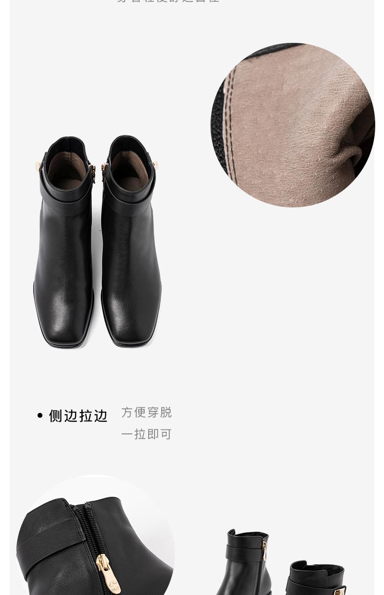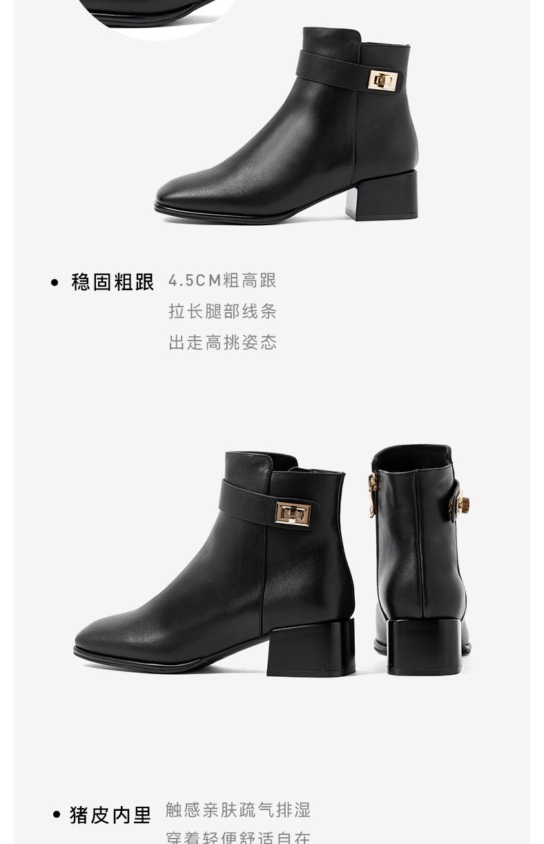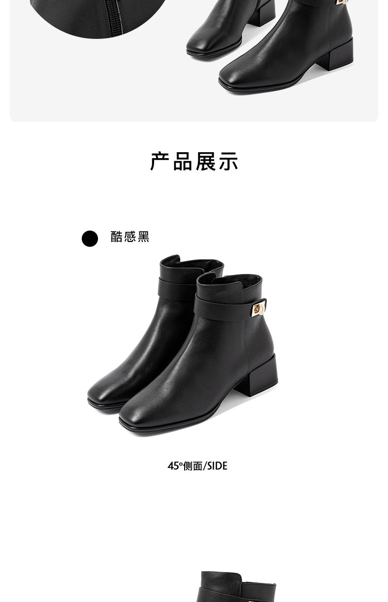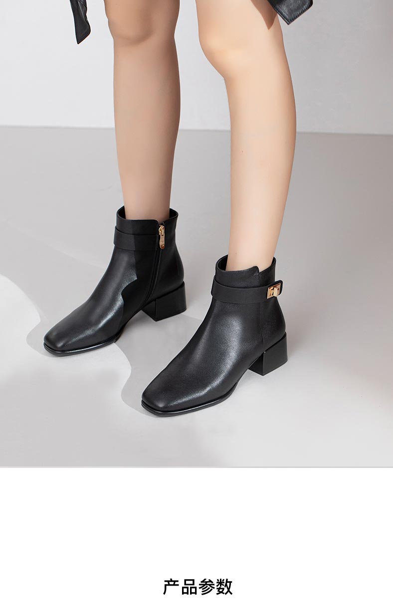 康莉2021年冬季新款时装靴女中跟复古方头简约短靴KYQ18506DU01DD1