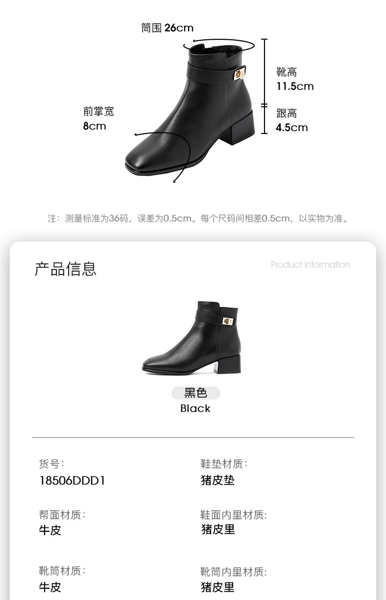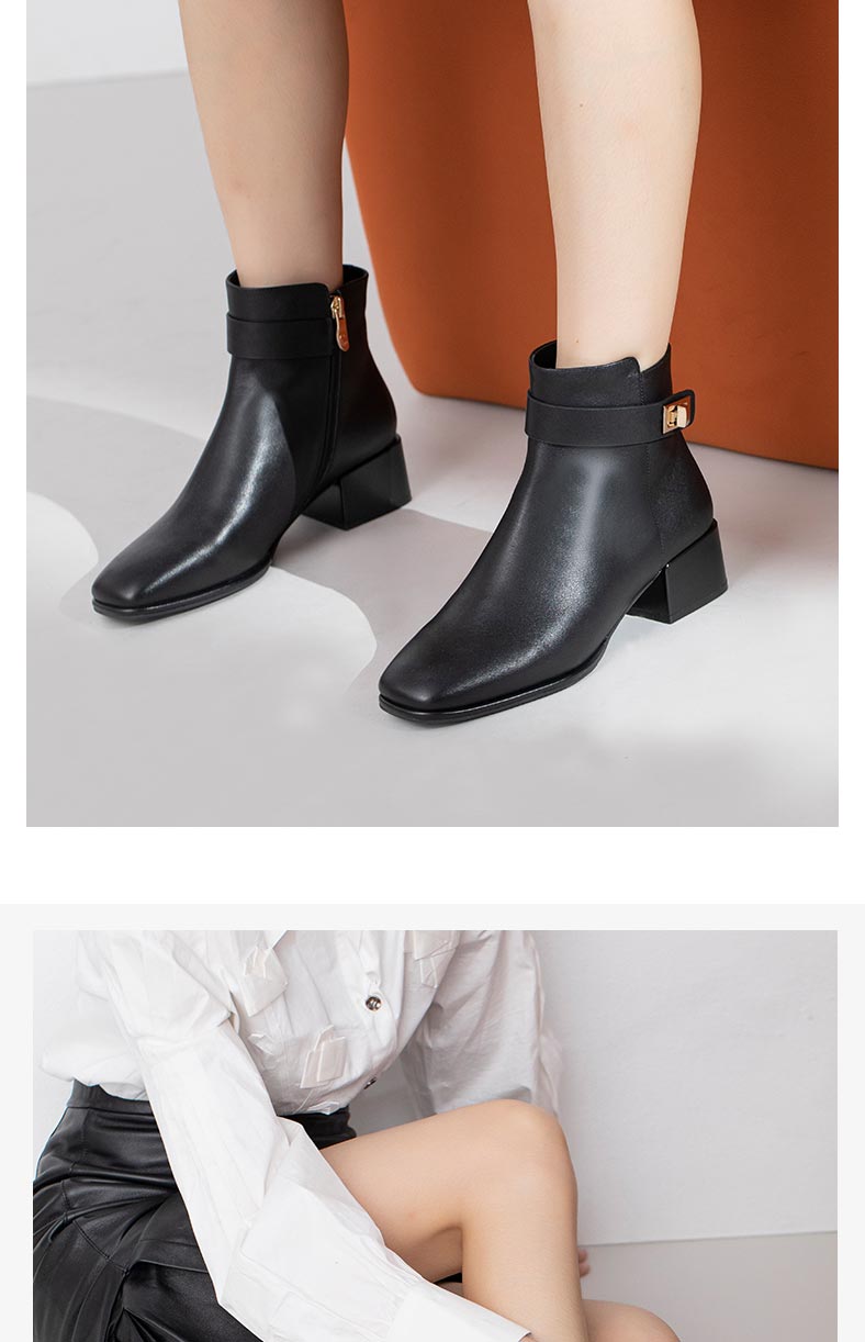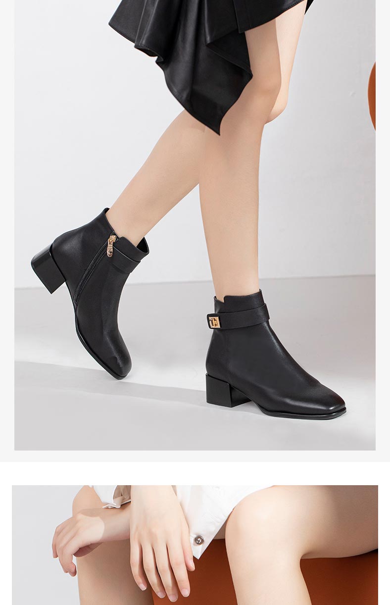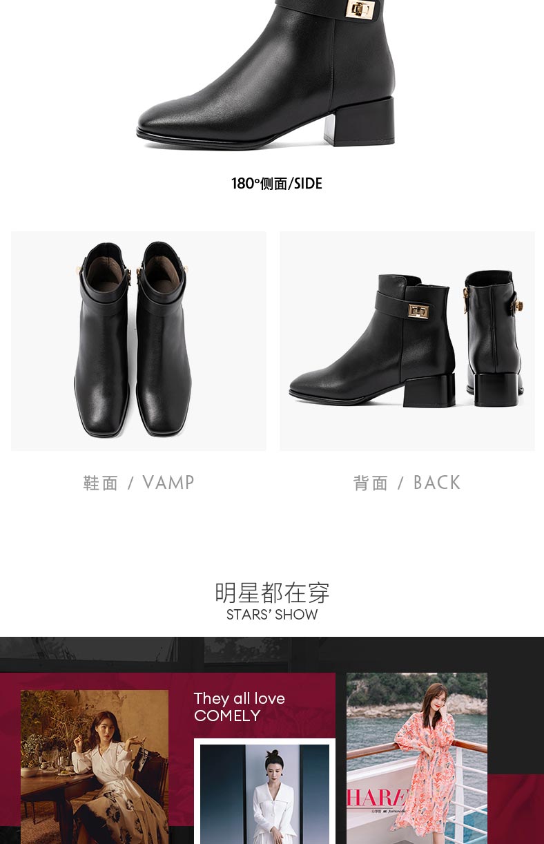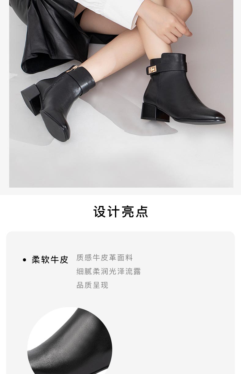康莉2021年冬季新款时装靴女中跟复古方头简约短靴KYQ18506DU01DD1