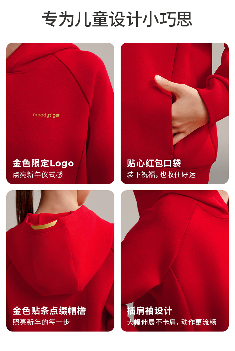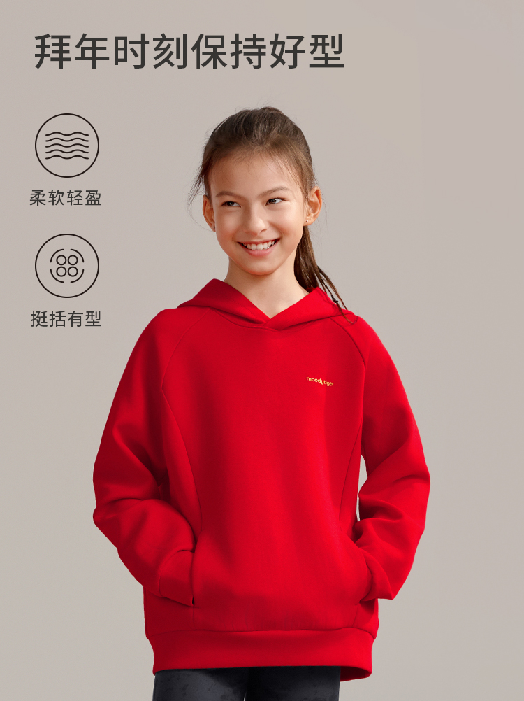 【新年系列】moodytiger儿童奶芙卫衣连帽新年保暖中国风61510302