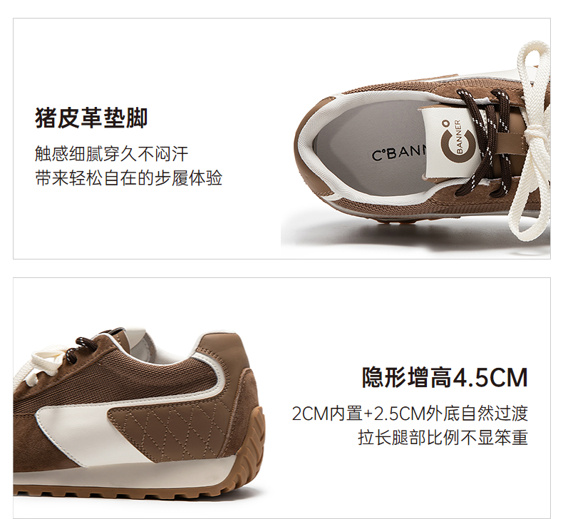 千百度复古内增高德训鞋女时尚休闲鞋透气跑步运动鞋A25406201
