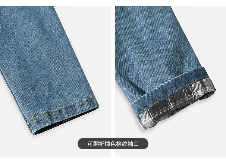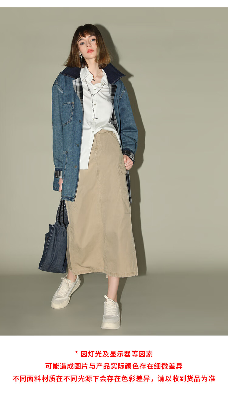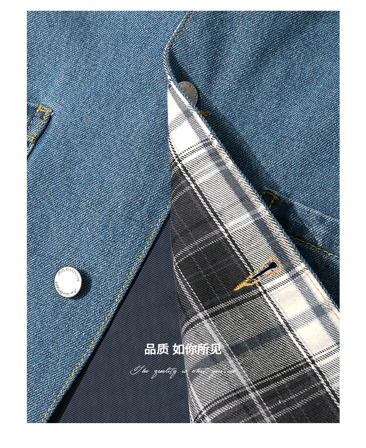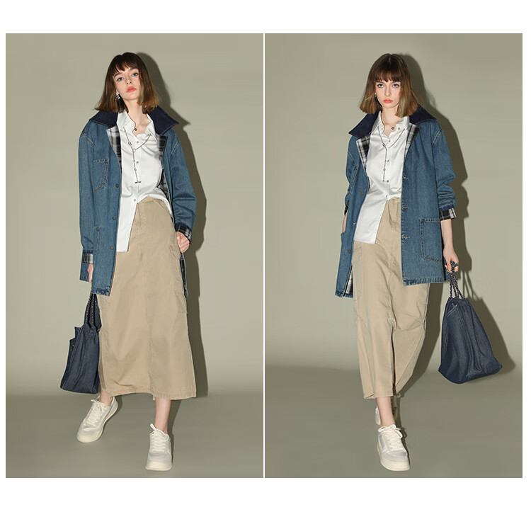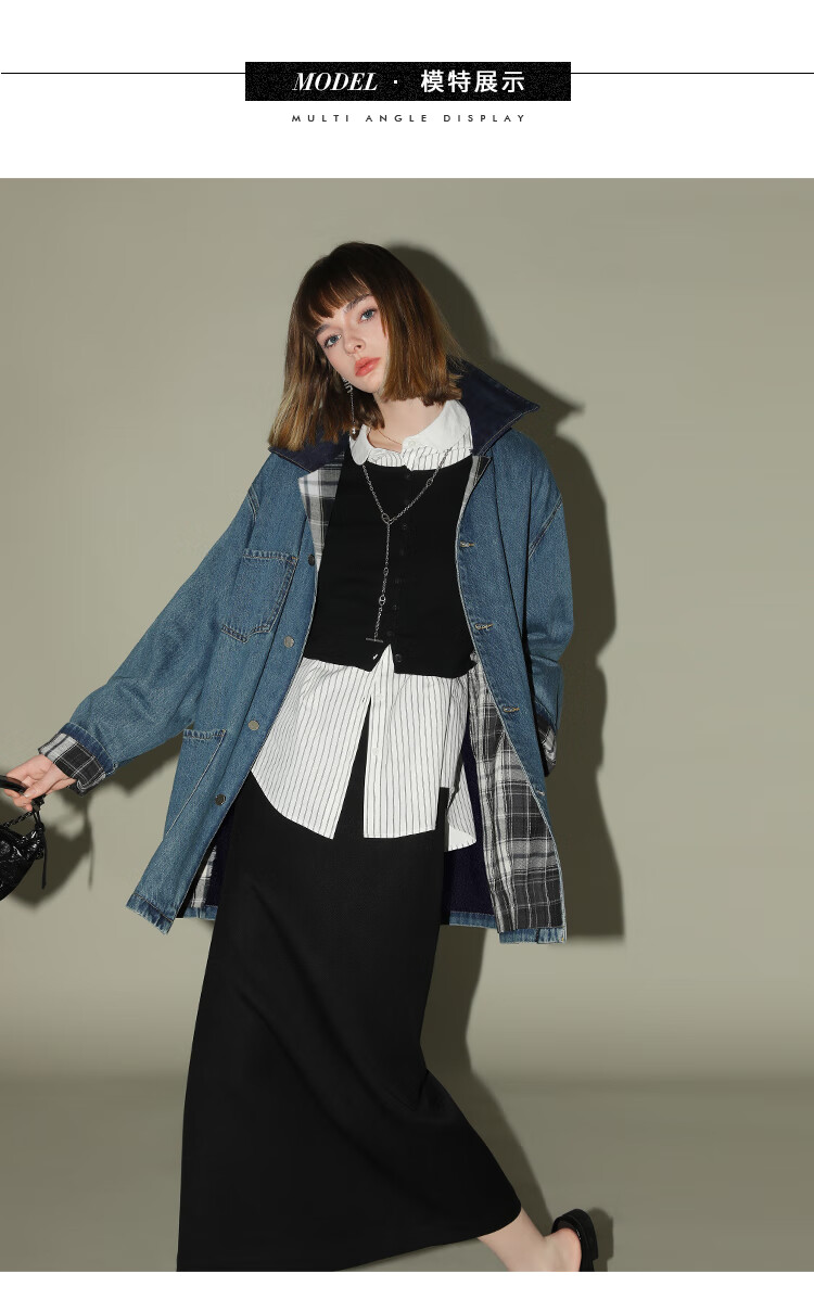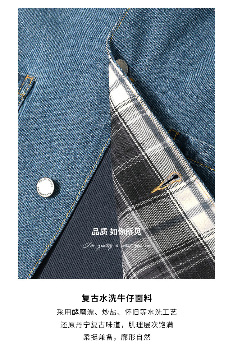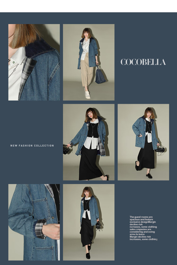 【限时特惠】COCOBELLA复古撞色格子重工牛仔外套休闲宽松丹宁风衣DN0008