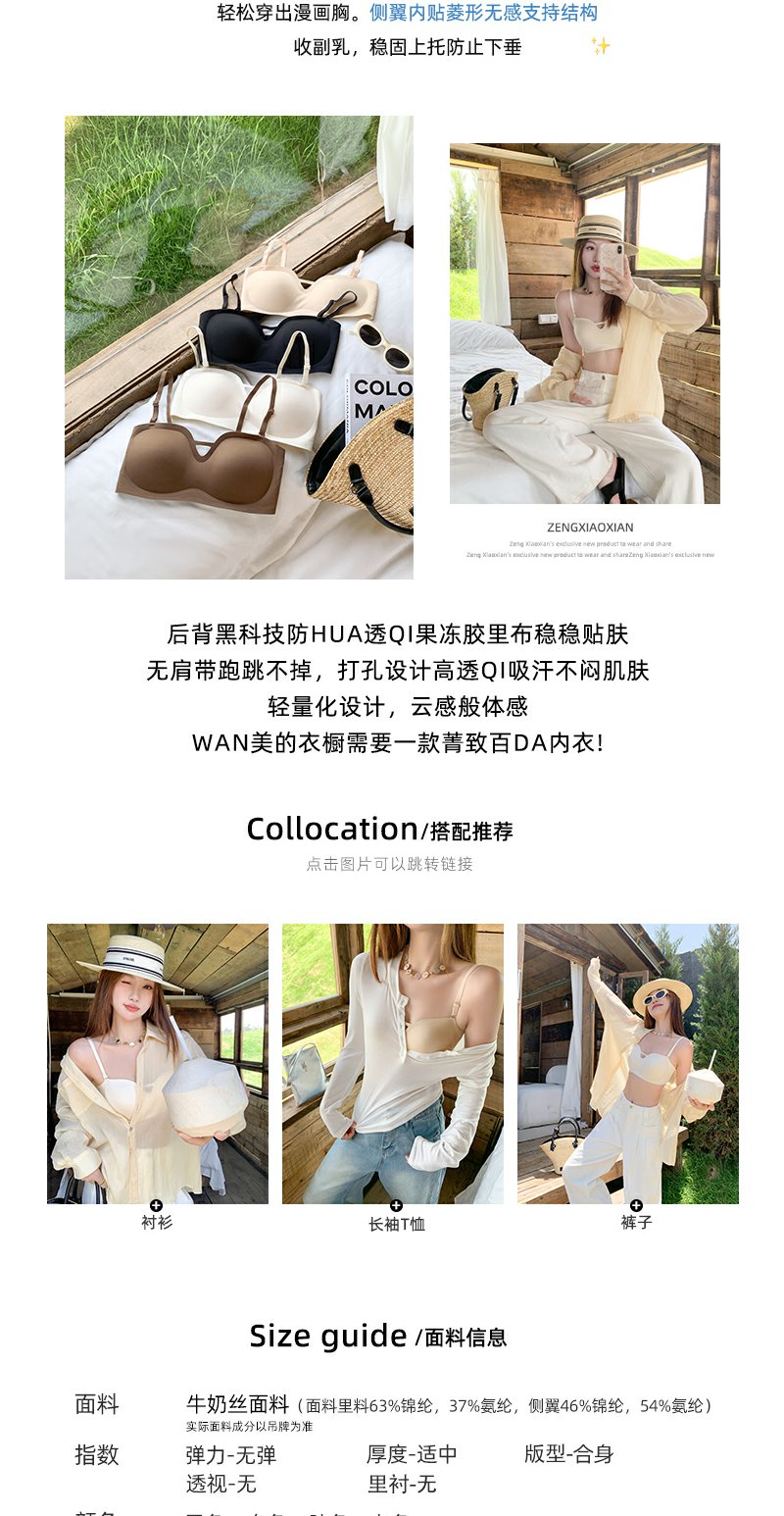 <曾小咸推荐>百搭4色肩带可拆卸吊带背心带胸垫内衣