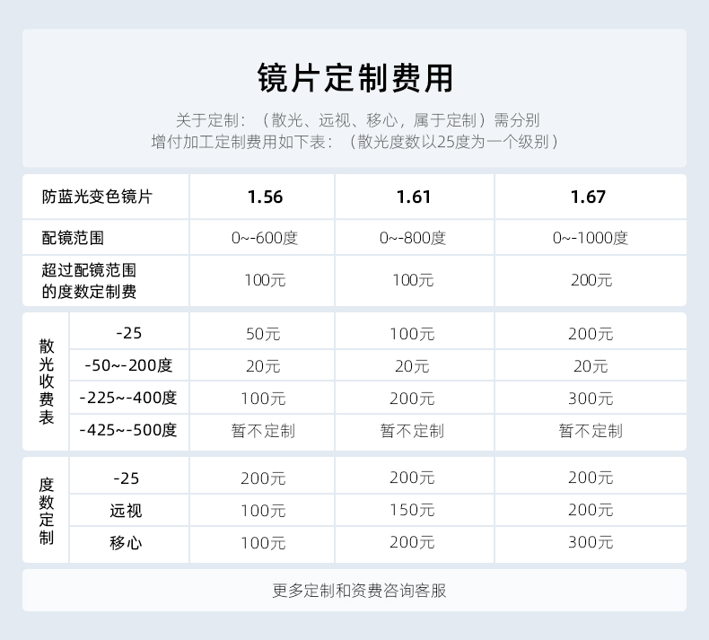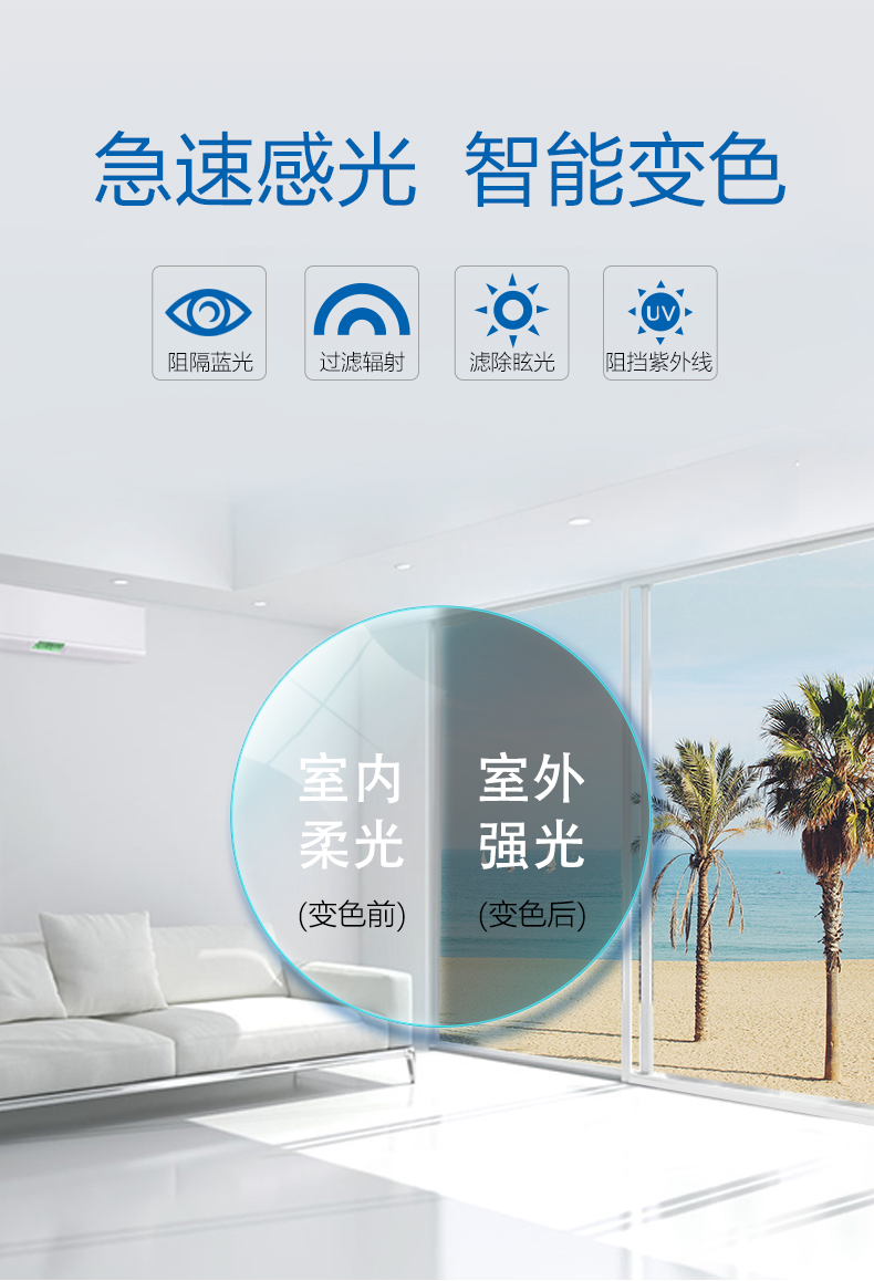 普莱斯防蓝光膜变变色1.56 1.61 1.67