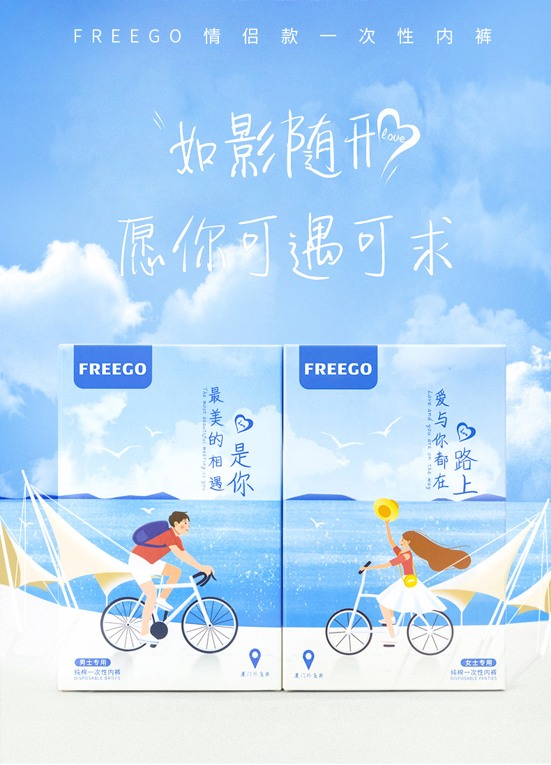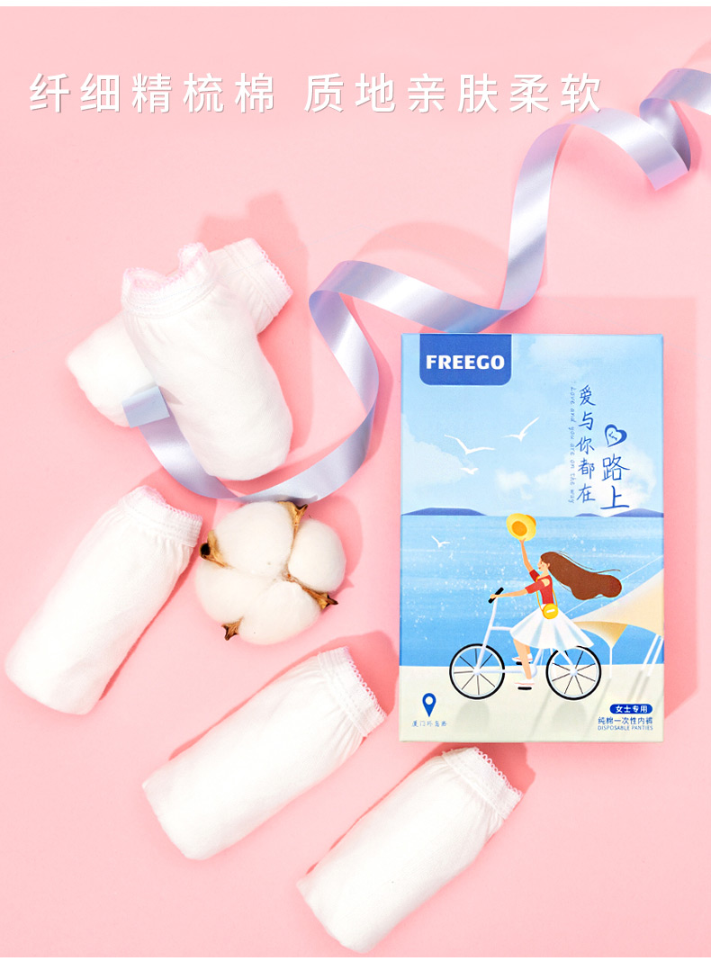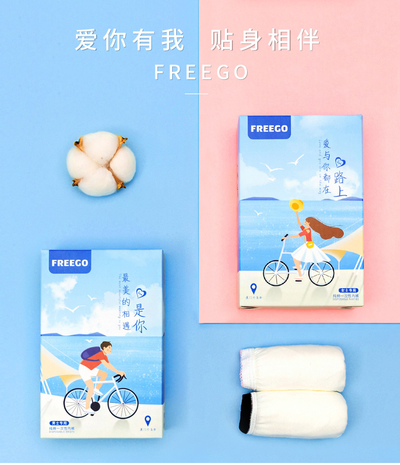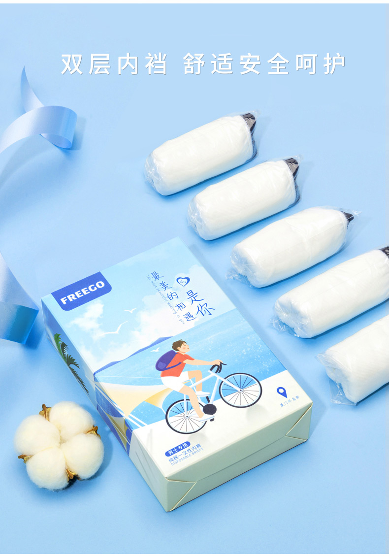Freego一次性内裤旅行纯棉男女情侣款非纸短裤独立免洗棉内裤5条装