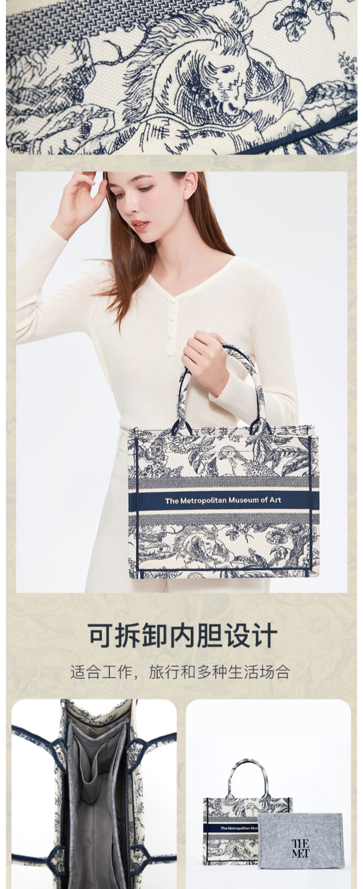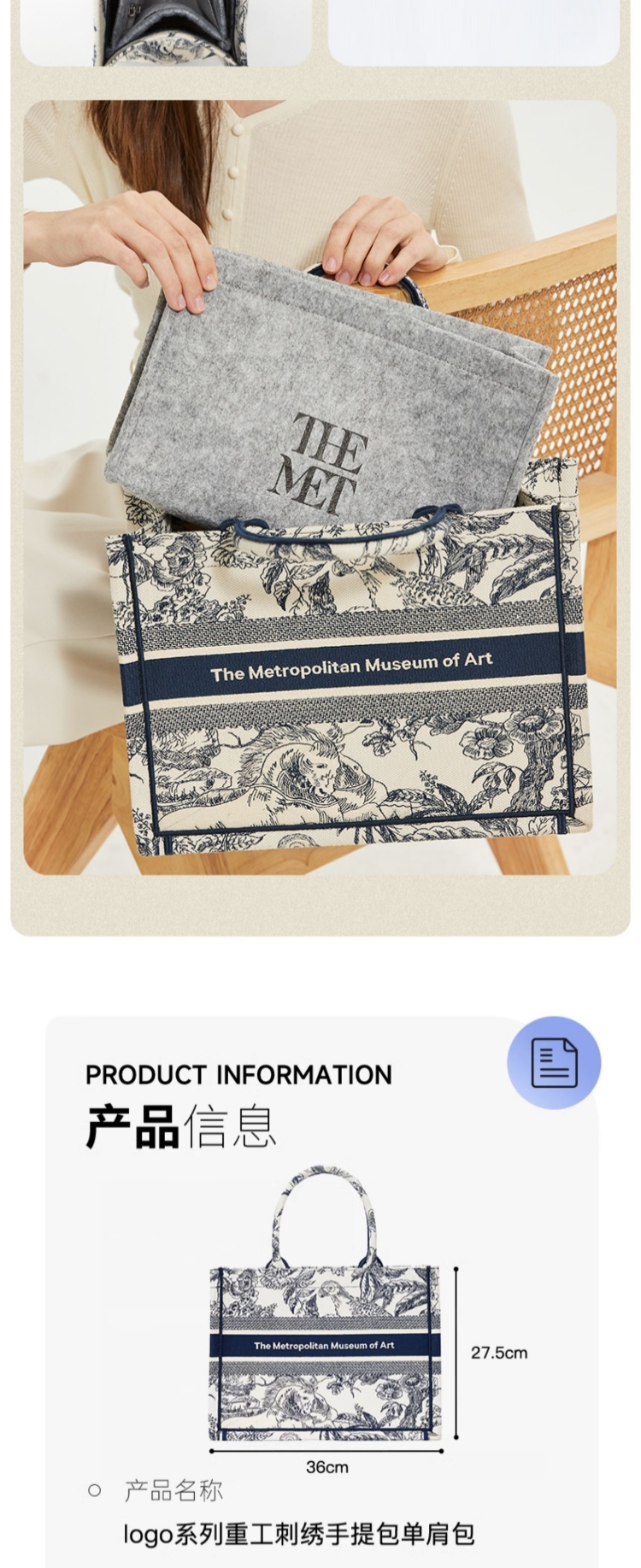 大都会艺术博物馆经典馆藏系列 重工刺绣手提包单肩包