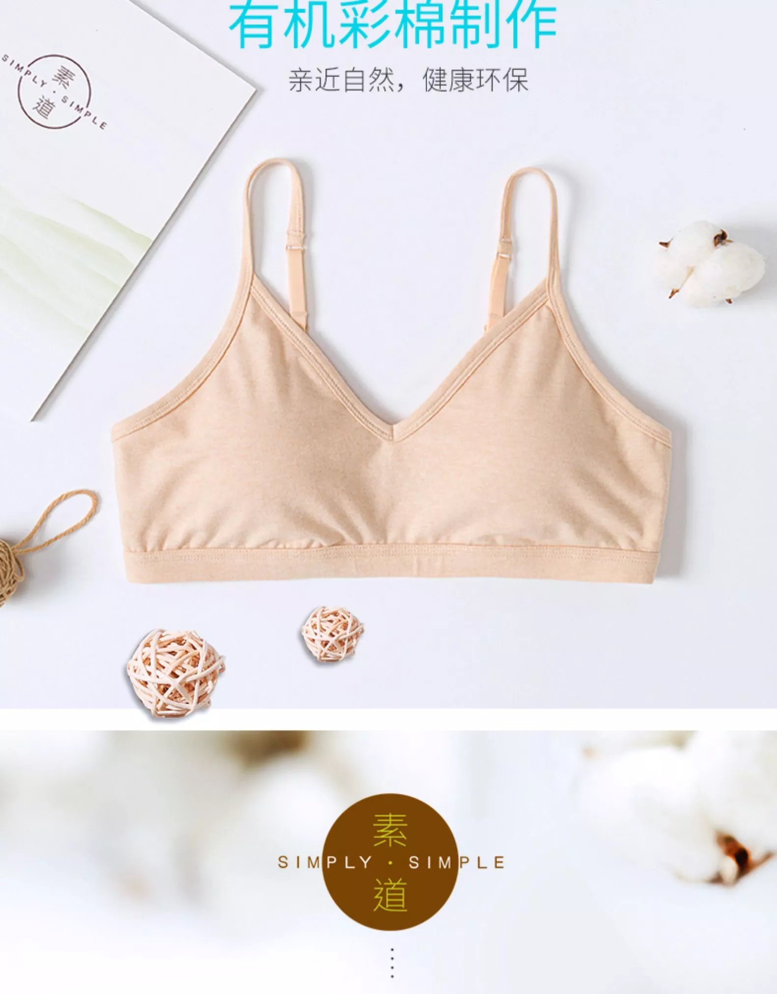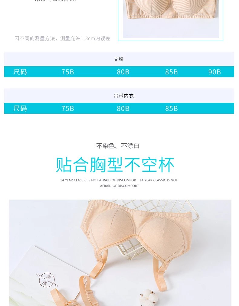 素道有机棉文胸吊带 文胸内衣一片式无痕内衣【京东快递送货上门】