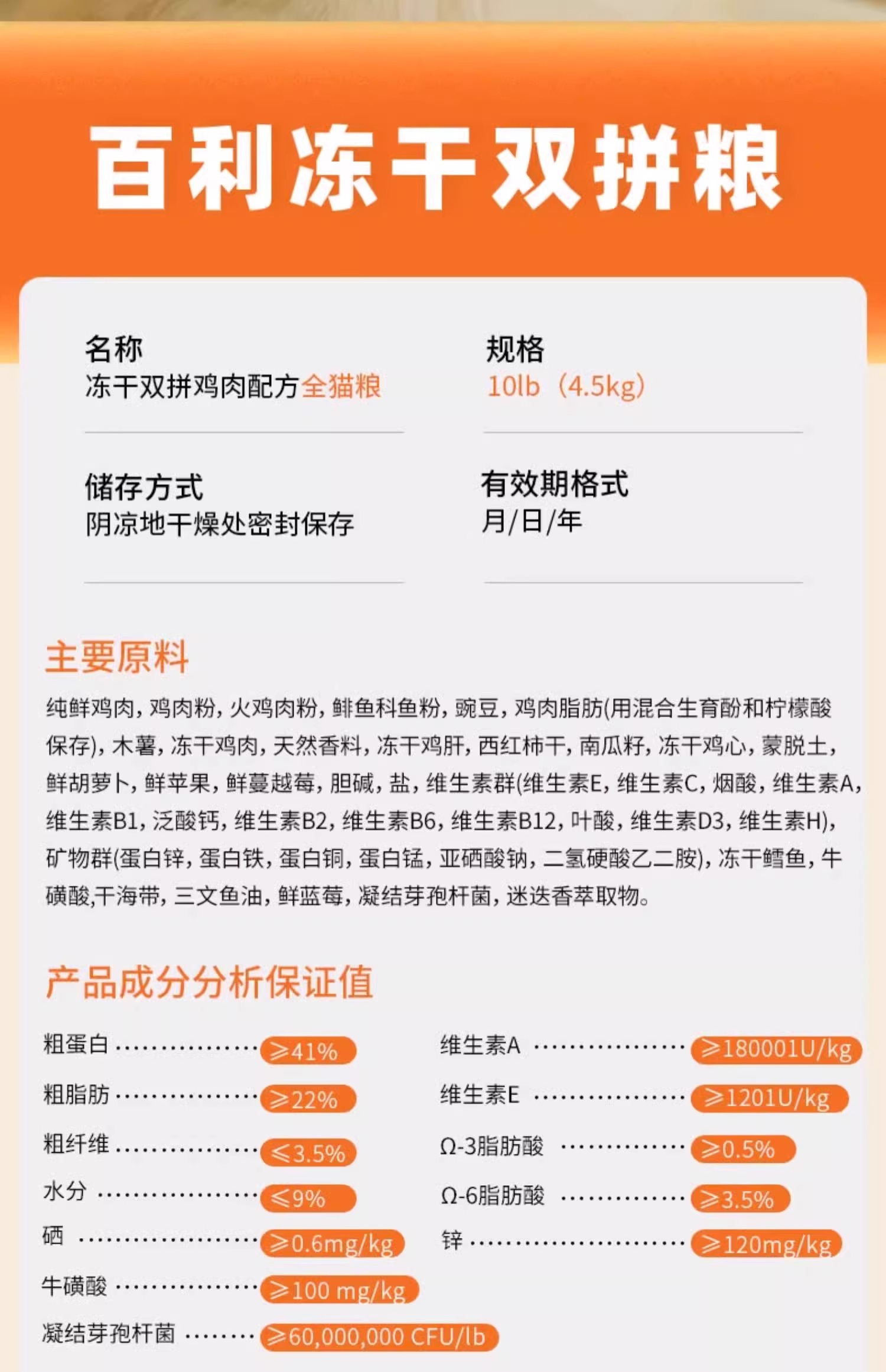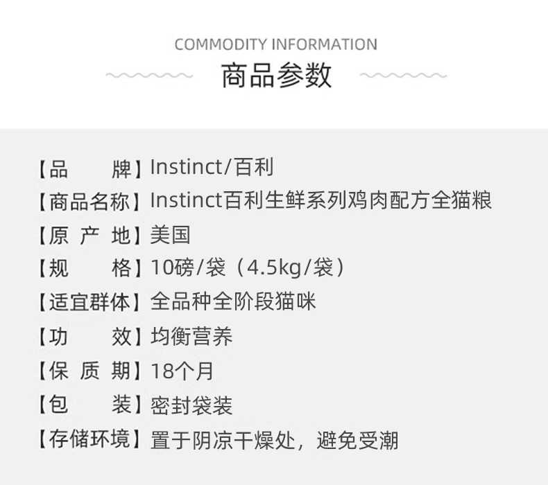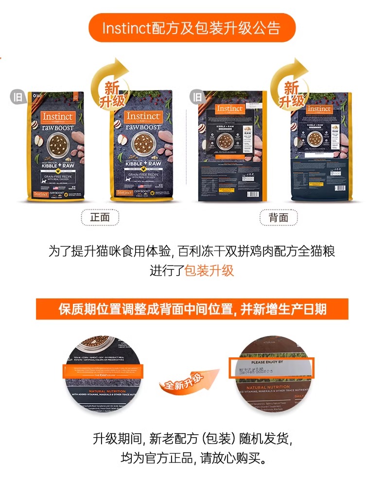 【保税仓】INSTINCT天然百利原食生鲜鸡猫粮10lbs/包(有效期至25年12月)