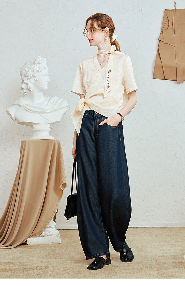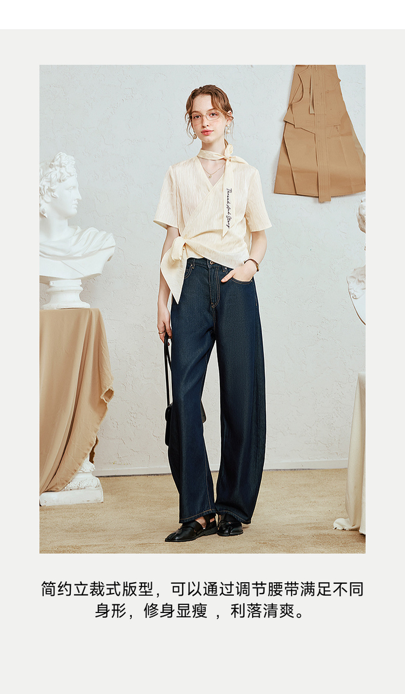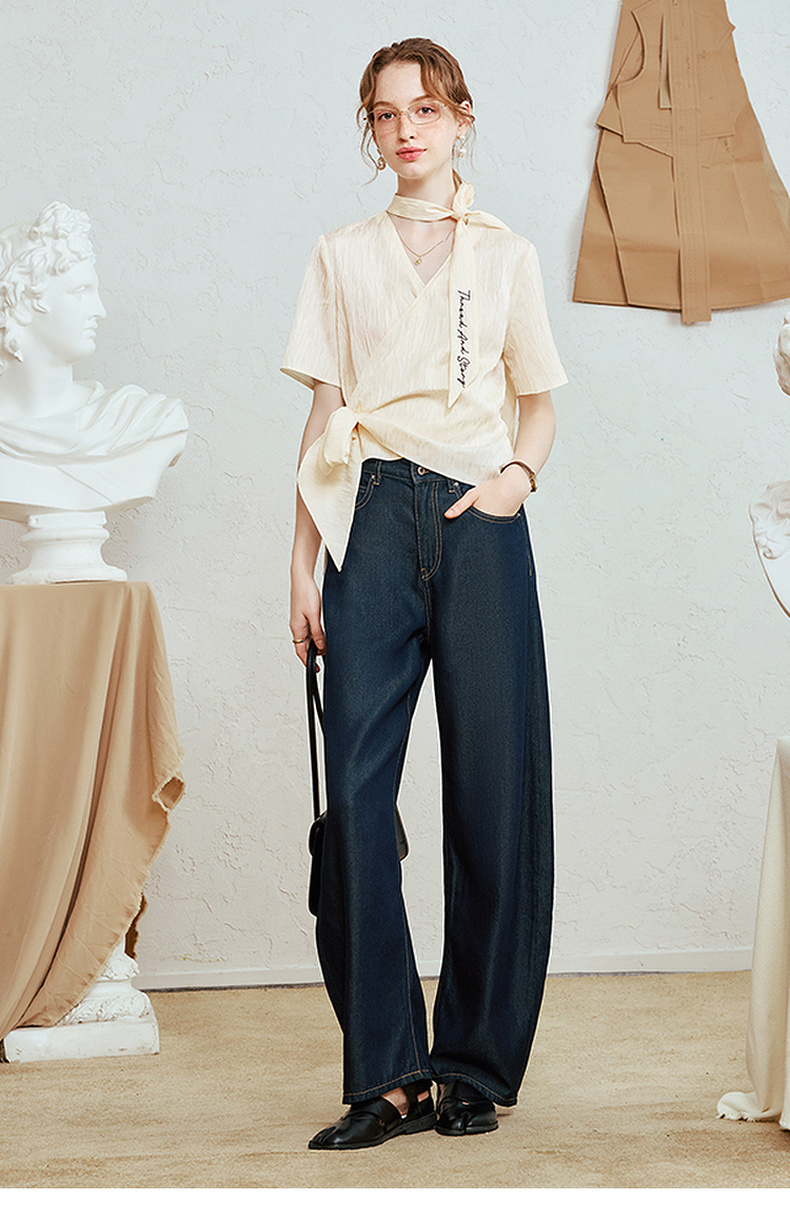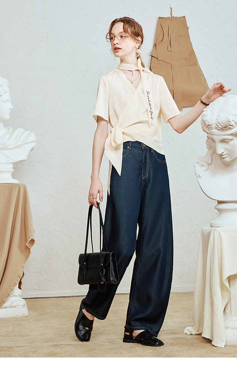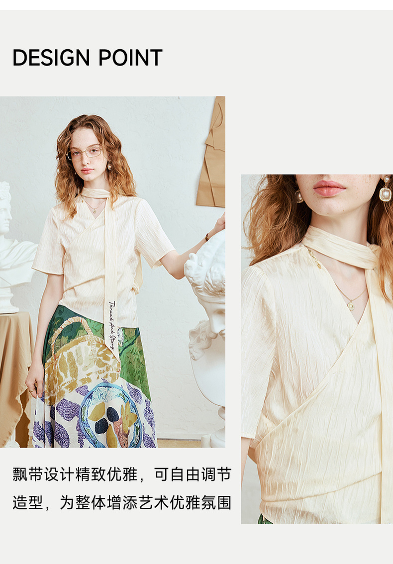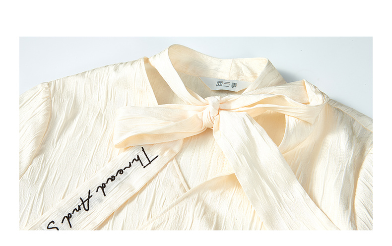 两三事 白日梦屿 2025夏季新款简约字母刺绣领带斜边绑带衬衫女