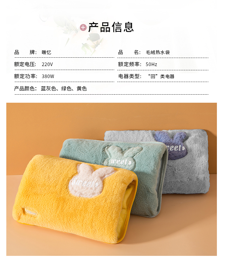 暖忆 热水袋暖水袋暖手宝暖宝宝电暖宝电热宝 保暖 防爆萌短兔黄色 100013410129