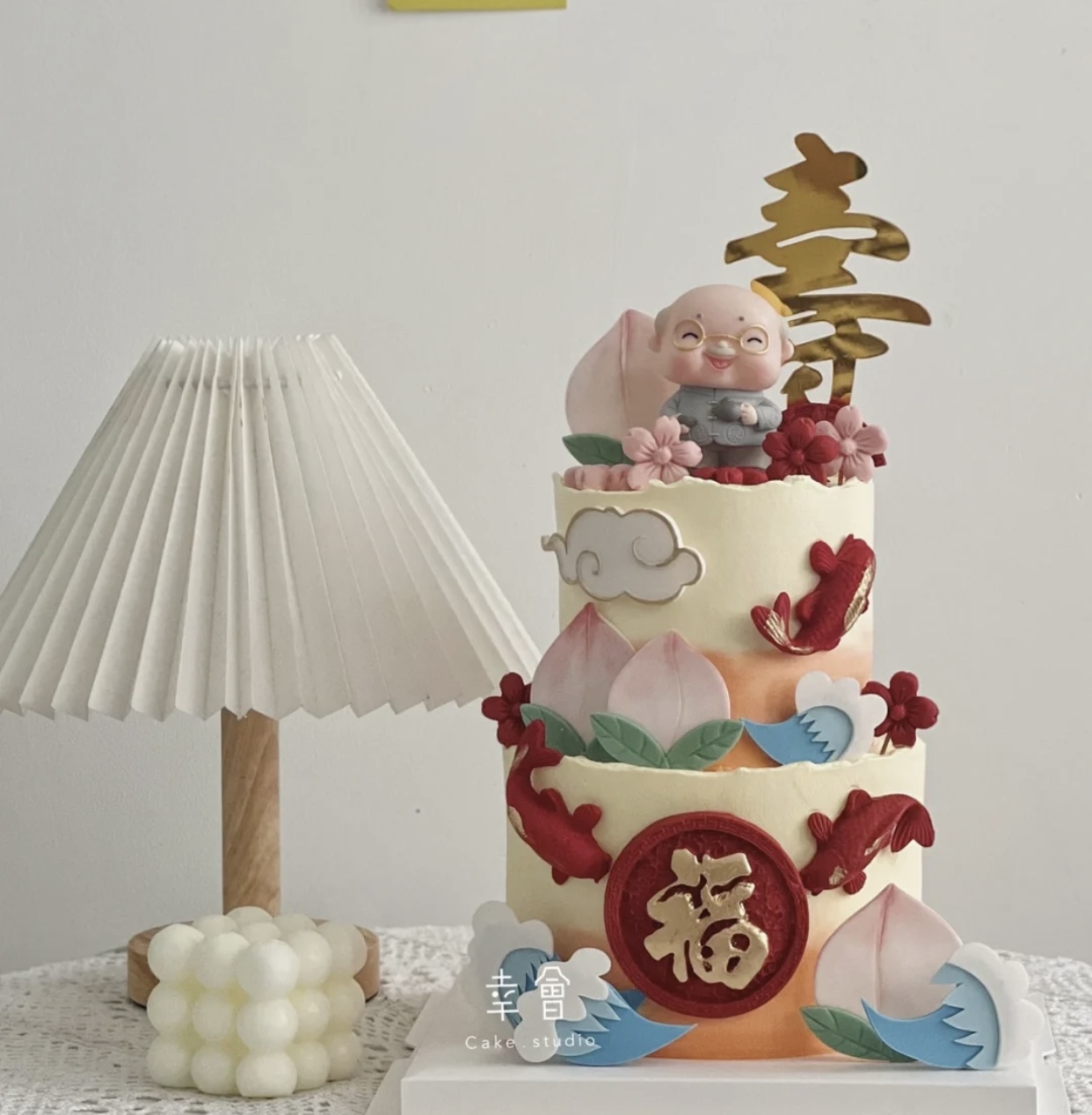 送爸爸长辈喜庆双层/三层祝寿蛋糕-低糖处理无添加