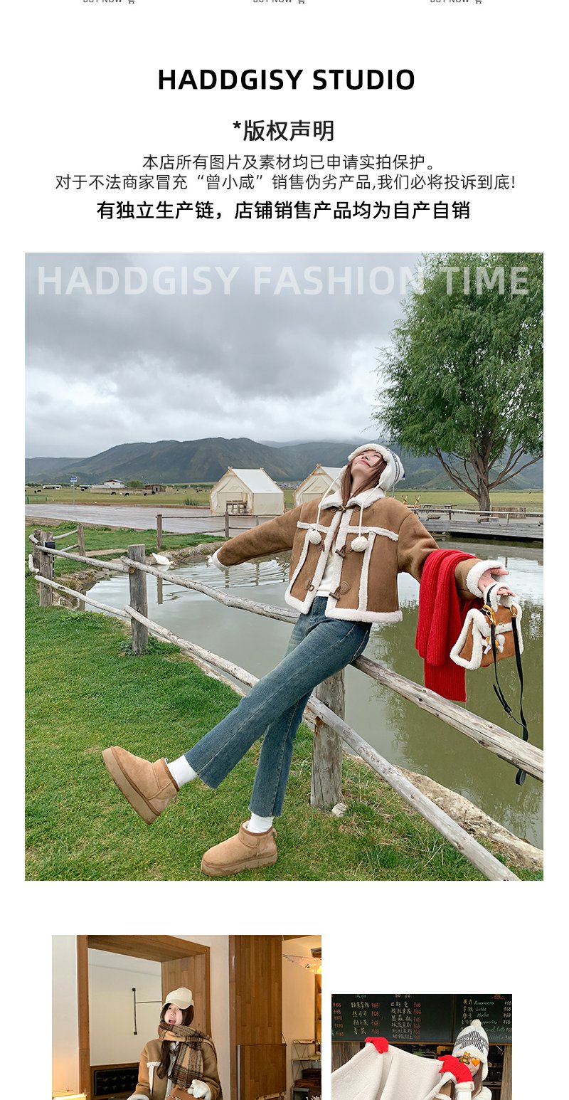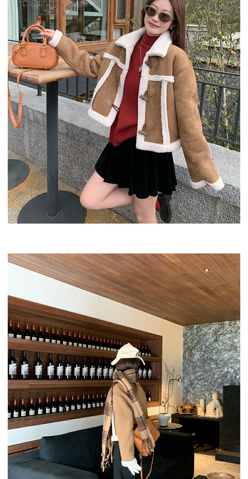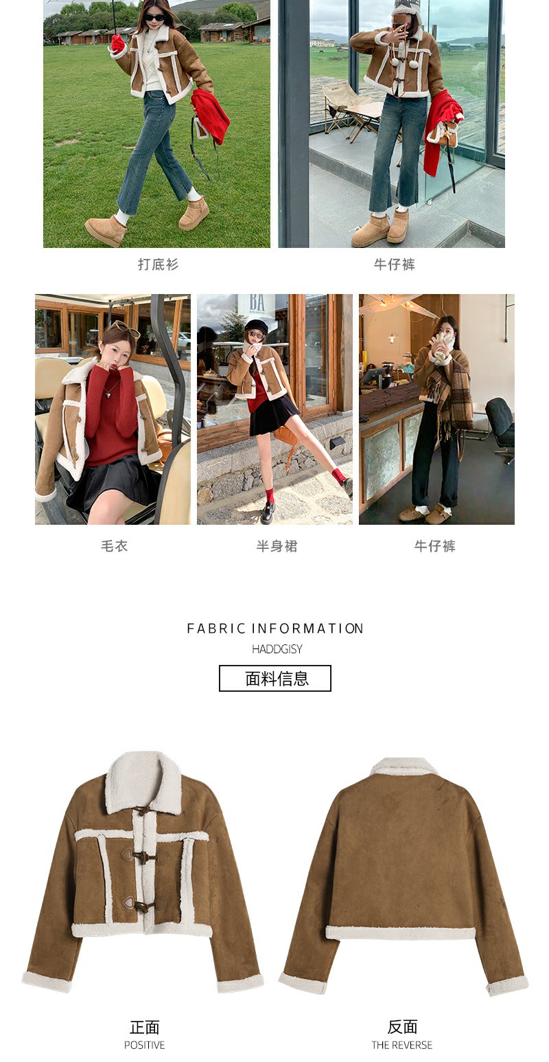 <曾小咸推荐>咖色翻领皮毛一体外套短款 日常249.99/件 立减110 秒杀139.99/件!!