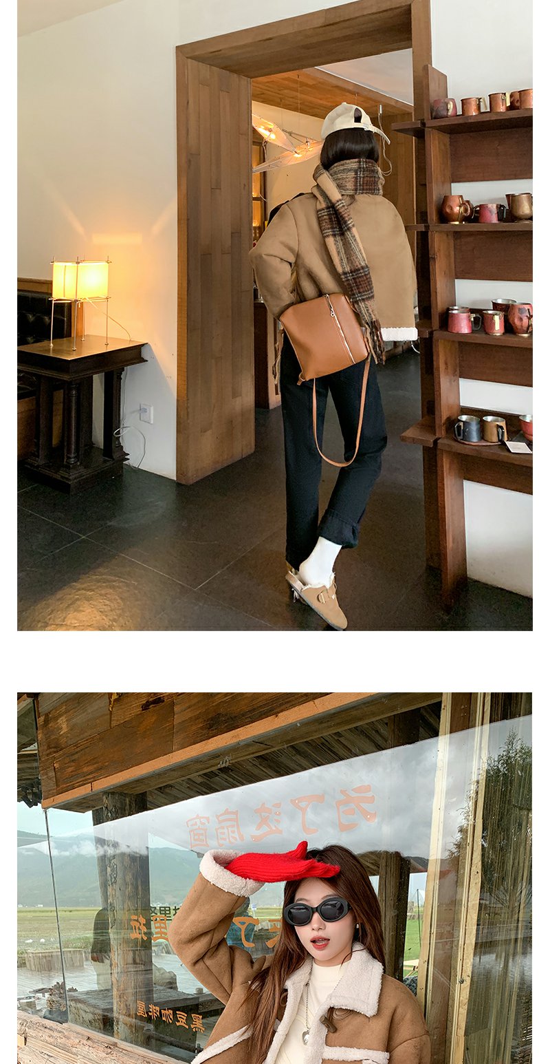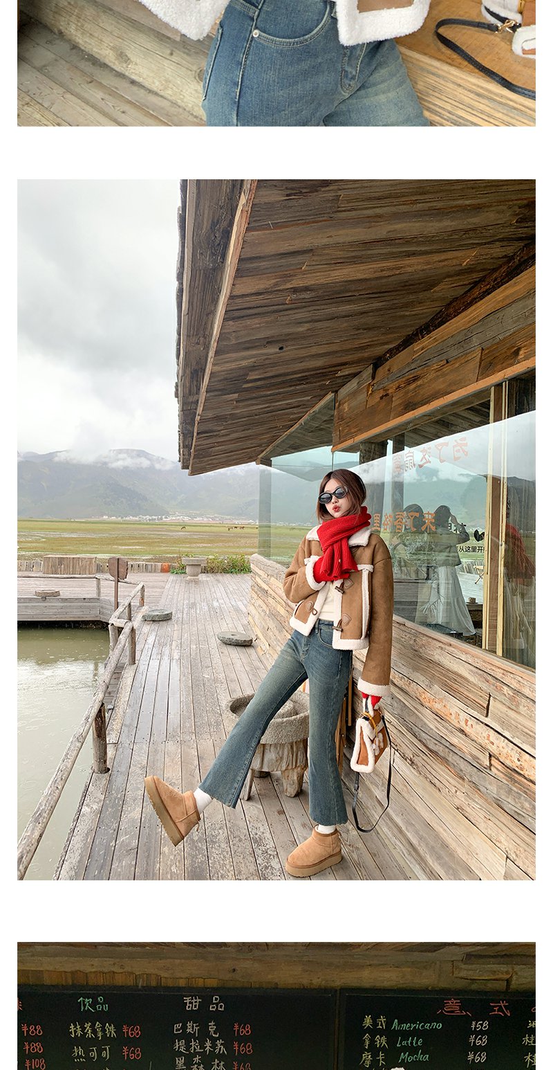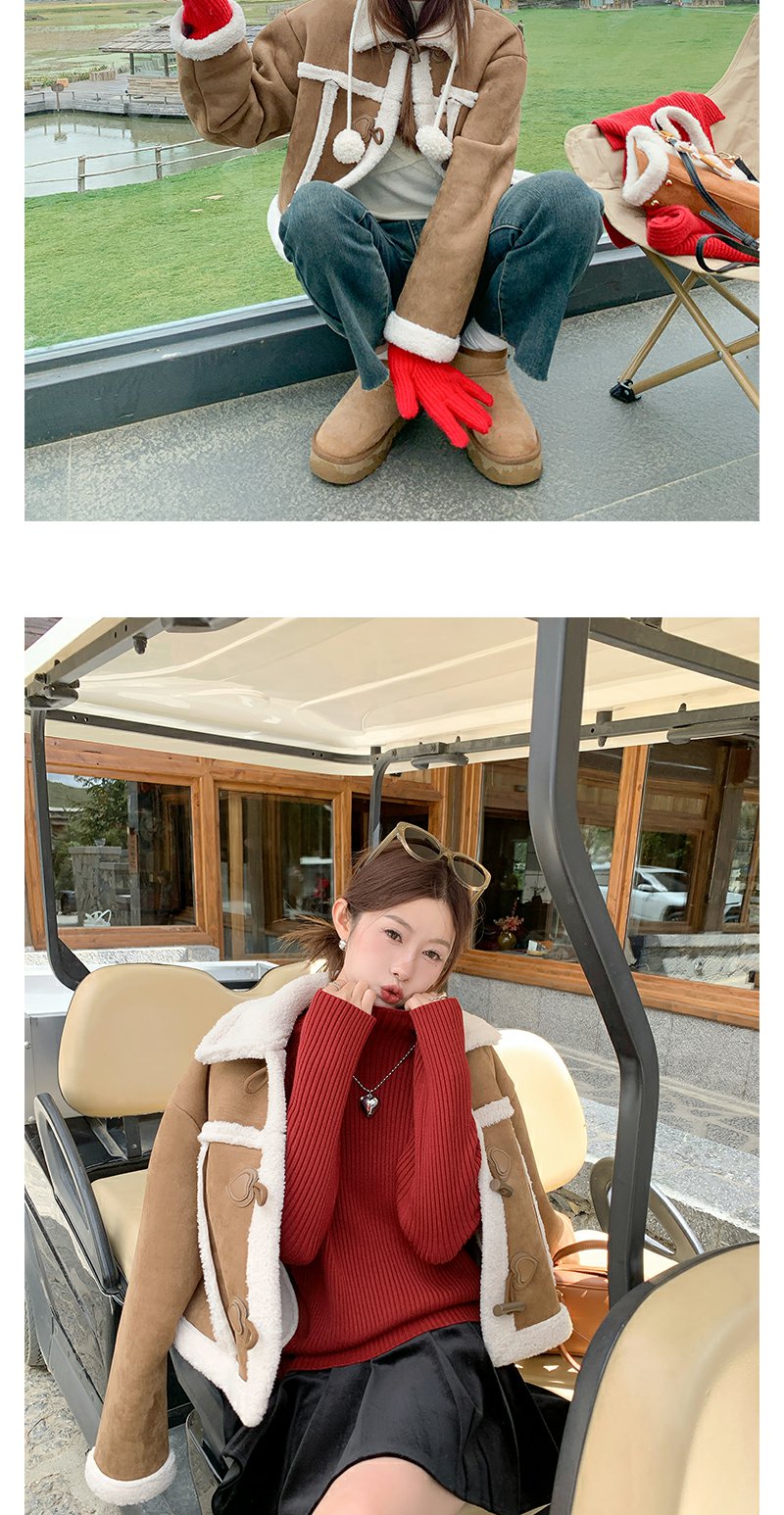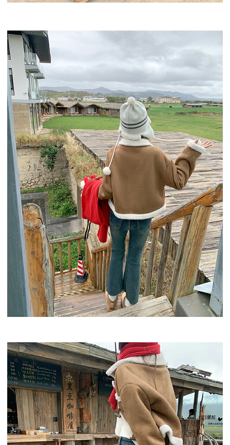 <曾小咸推荐>咖色翻领皮毛一体外套短款 日常249.99/件 立减110 秒杀139.99/件!!