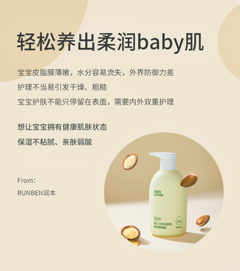 【四季润肤,宝宝护舒适】润本儿童身体乳,妙趣横生的呵护秘籍,告别干燥鳞屑,四季如春,让肌肤永葆湿润与弹性,专为宝贝打造的温柔呵护,细腻如丝!