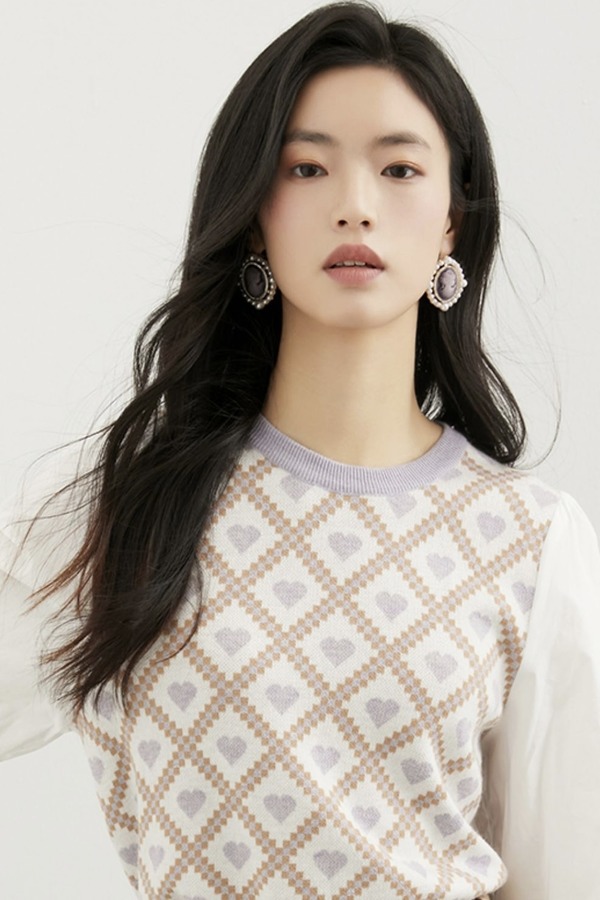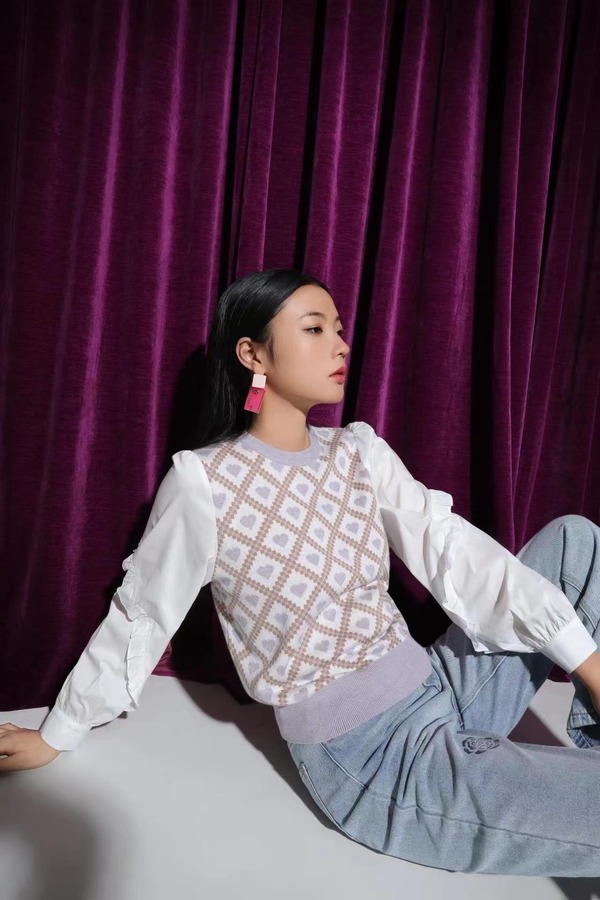 ANSUABEL 提花针织衬衫拼接上衣 17803