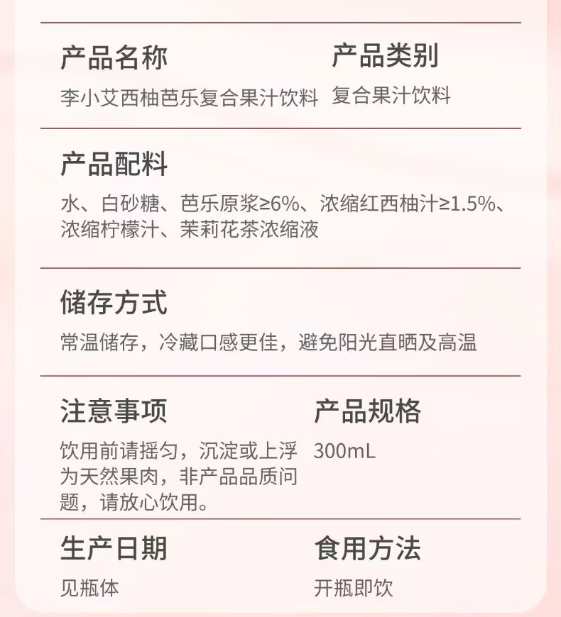 李小艾西柚芭乐饮料300ml