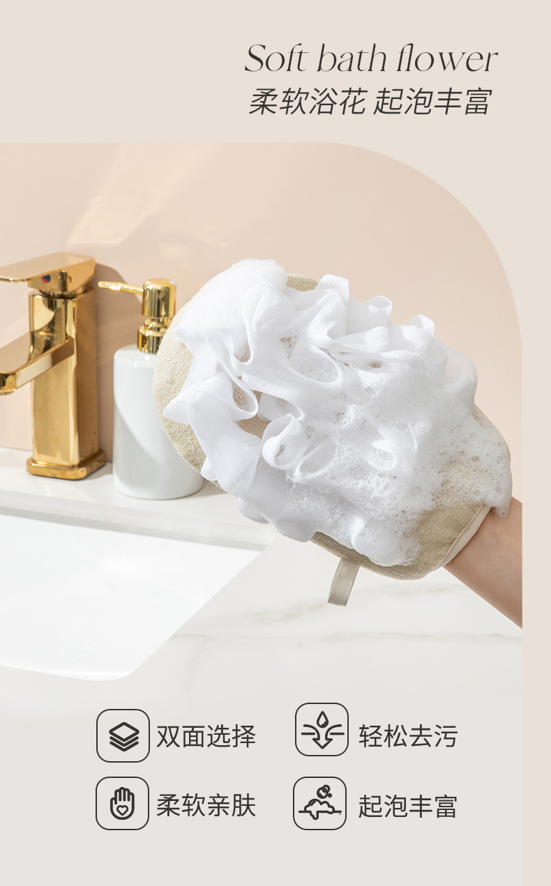 「双面搓澡二合一」搓澡巾搓泥搓后背搓澡二合一 居家日用大号沐浴手套不伤肤双面澡巾浴花