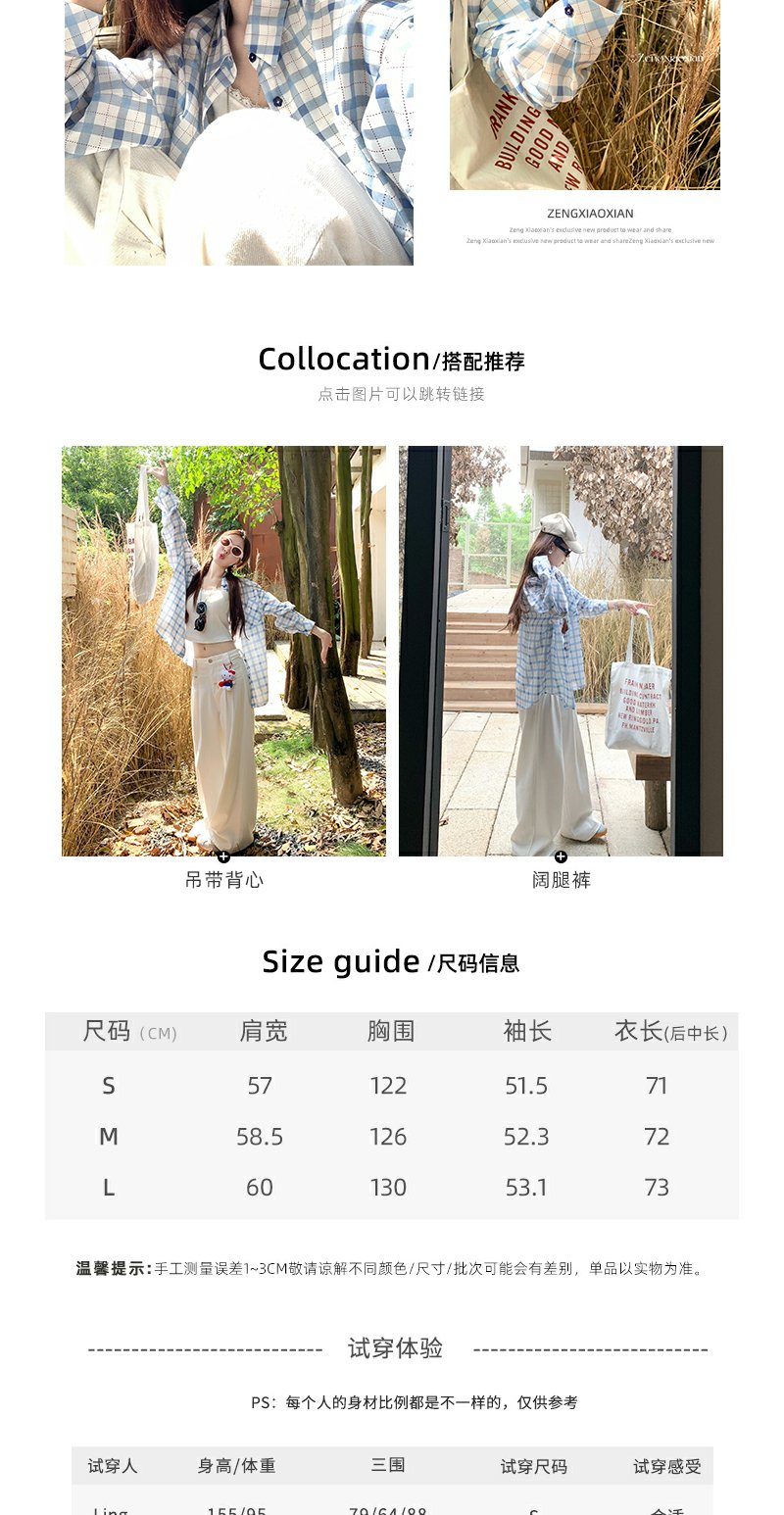 【149元任选2件】最后一波现货!蓝格子松弛长袖宽松防晒衬衫