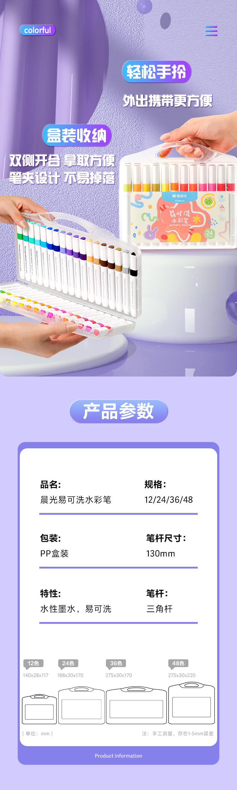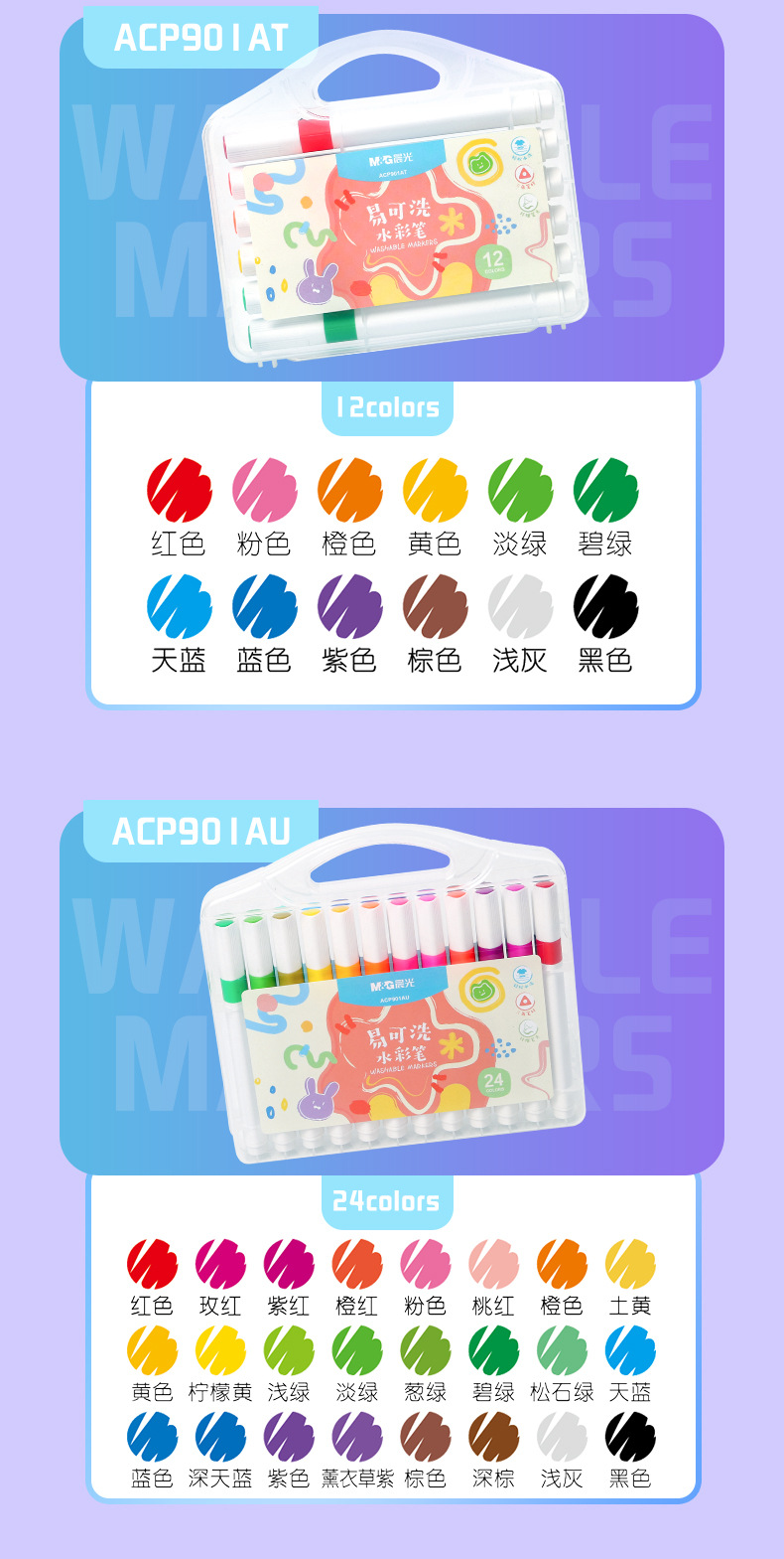 晨光ACP901AT水彩笔 儿童可水洗无毒画笔套装 幼儿园彩色笔文具