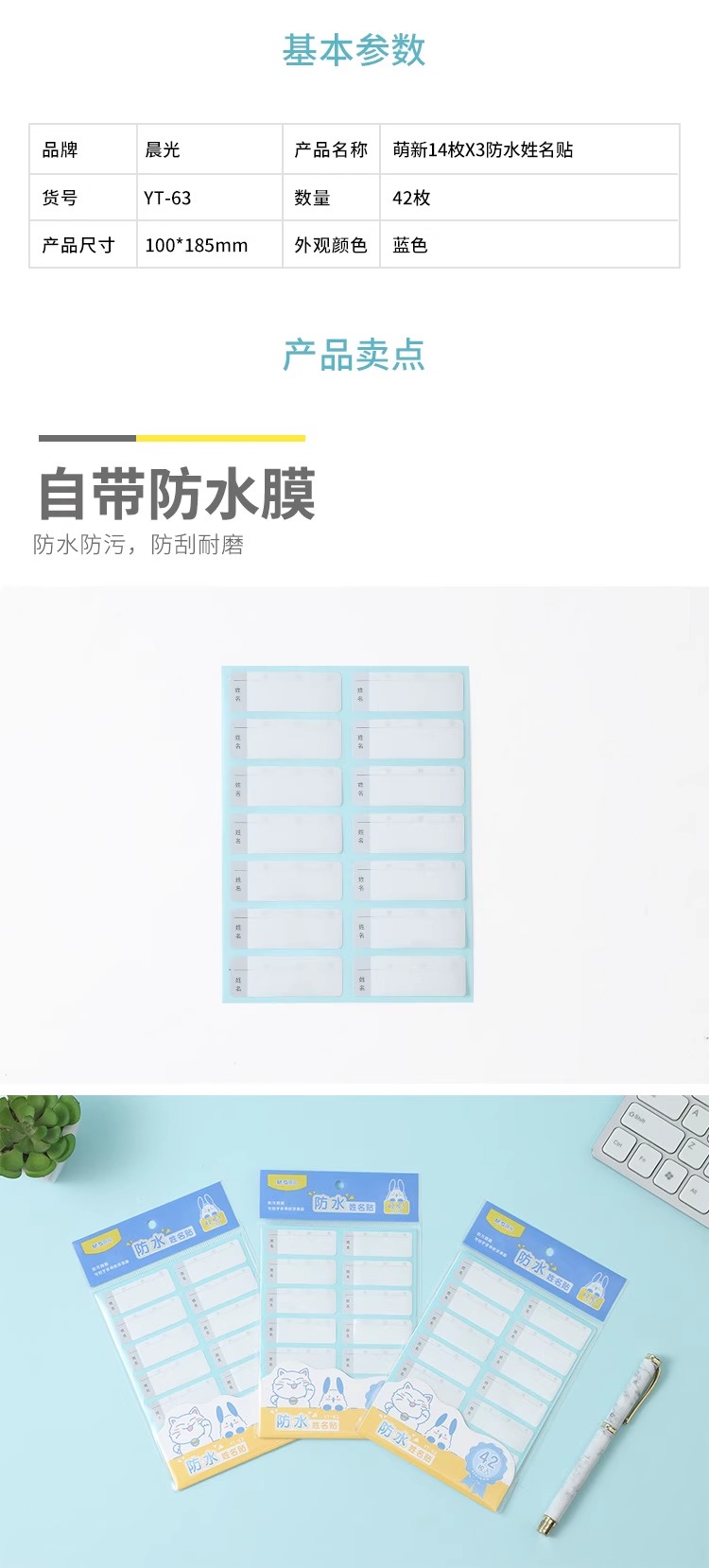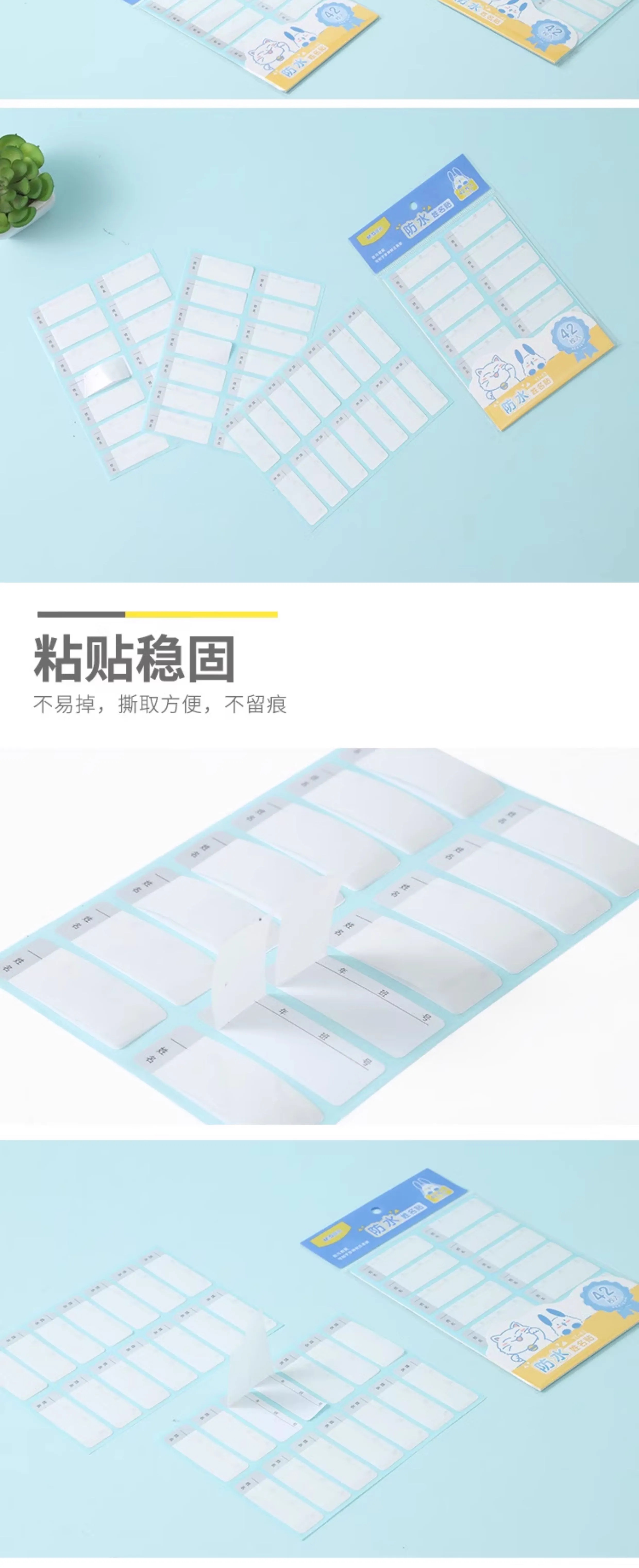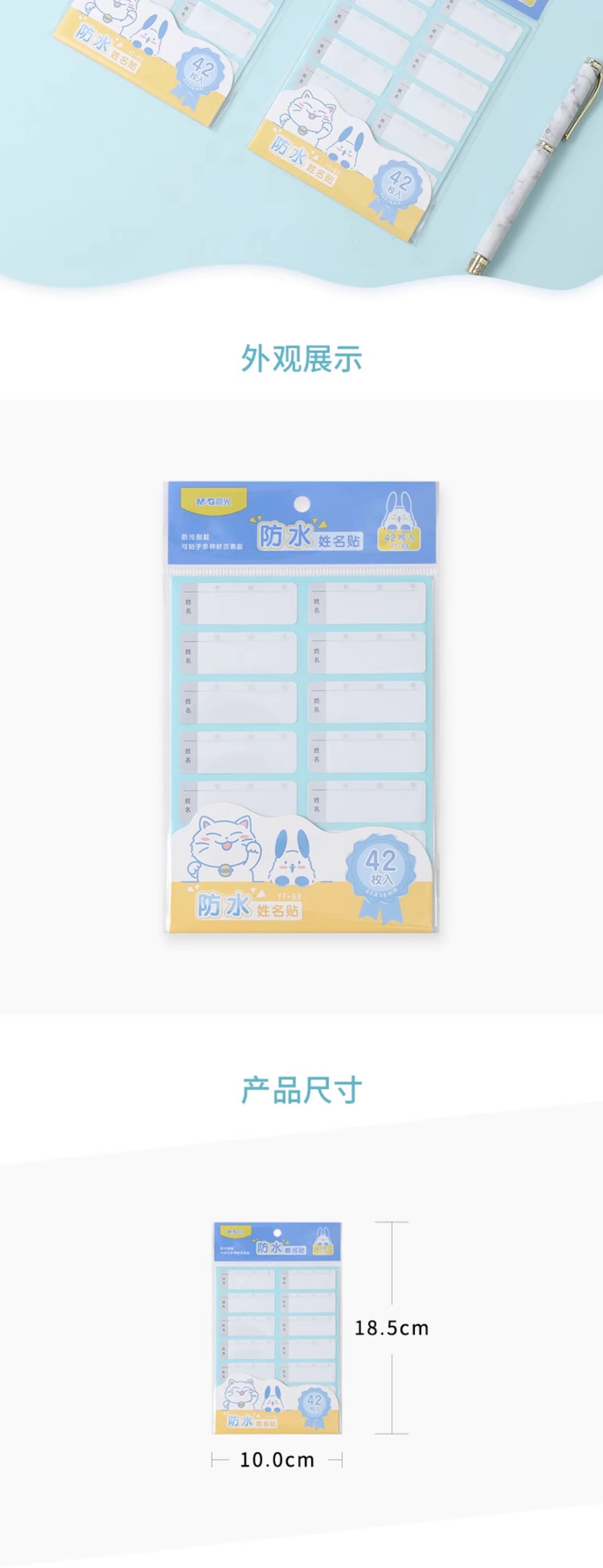 YT-63晨光萌新14枚*3防水姓名贴 防水姓名贴不干胶学生标签贴纸自粘手写防撕便利贴