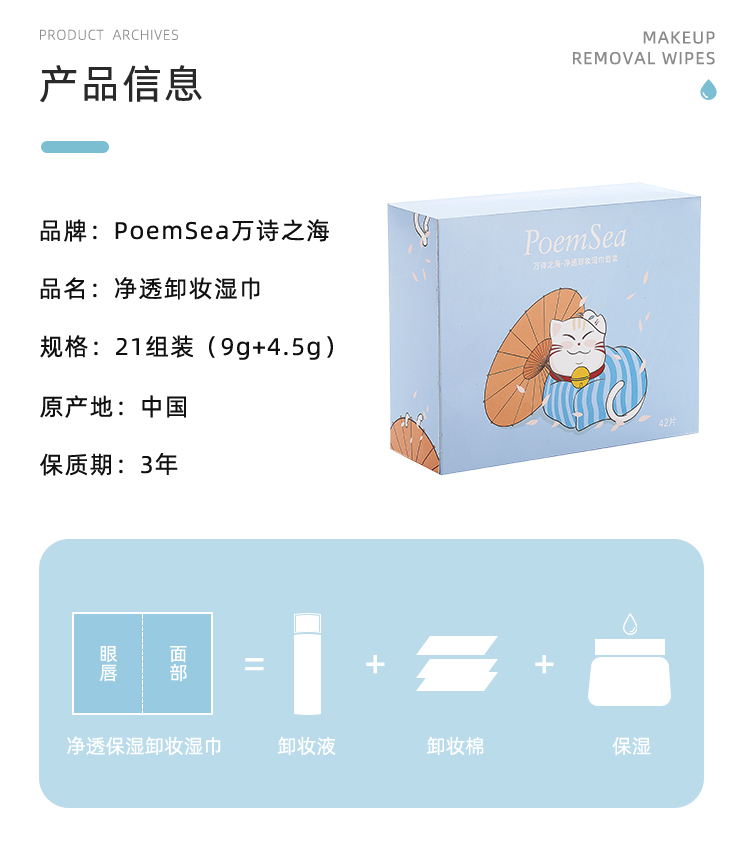 PoemSea万诗之海净透卸妆湿巾套装42片