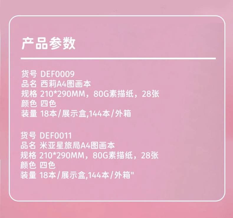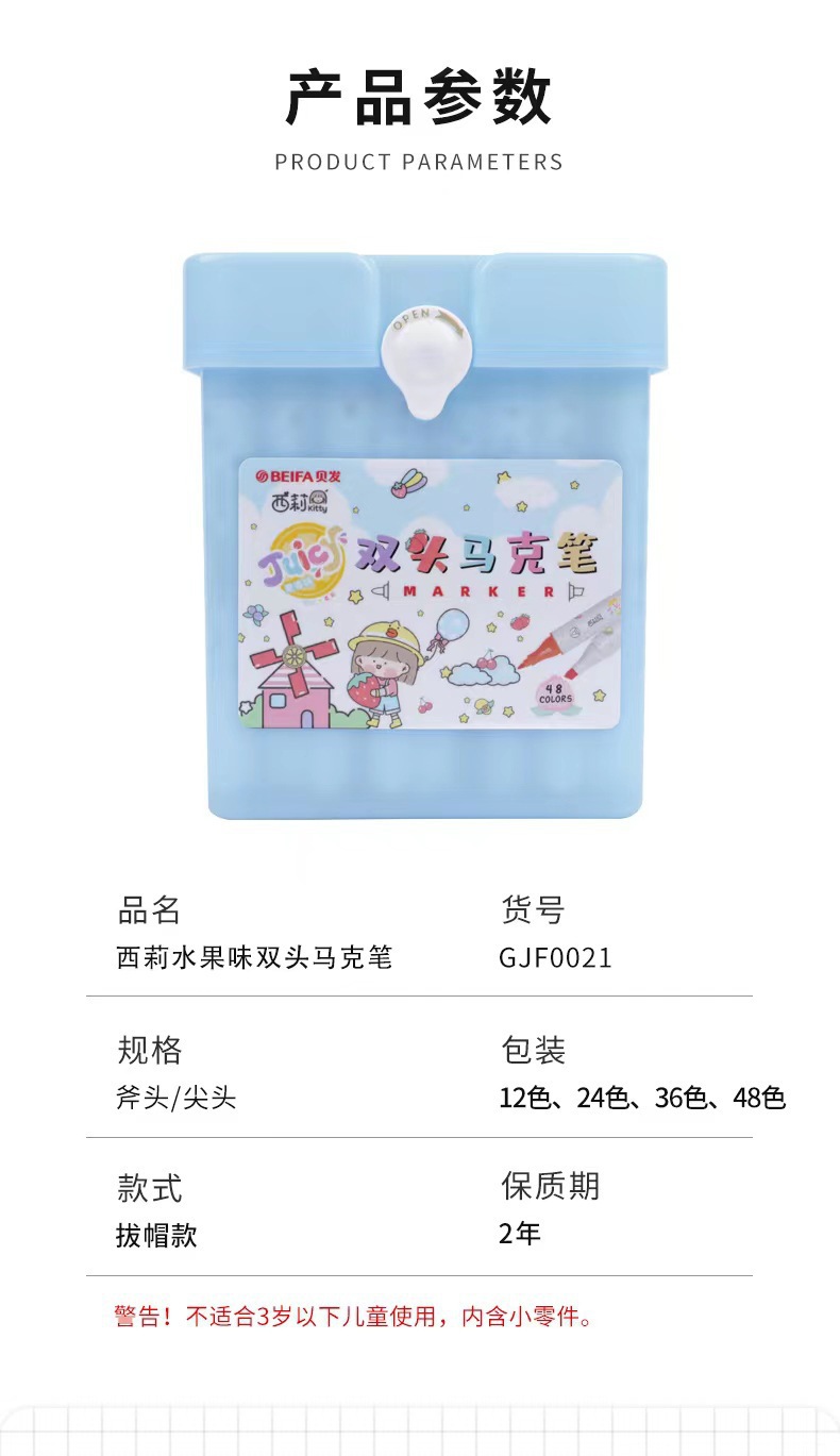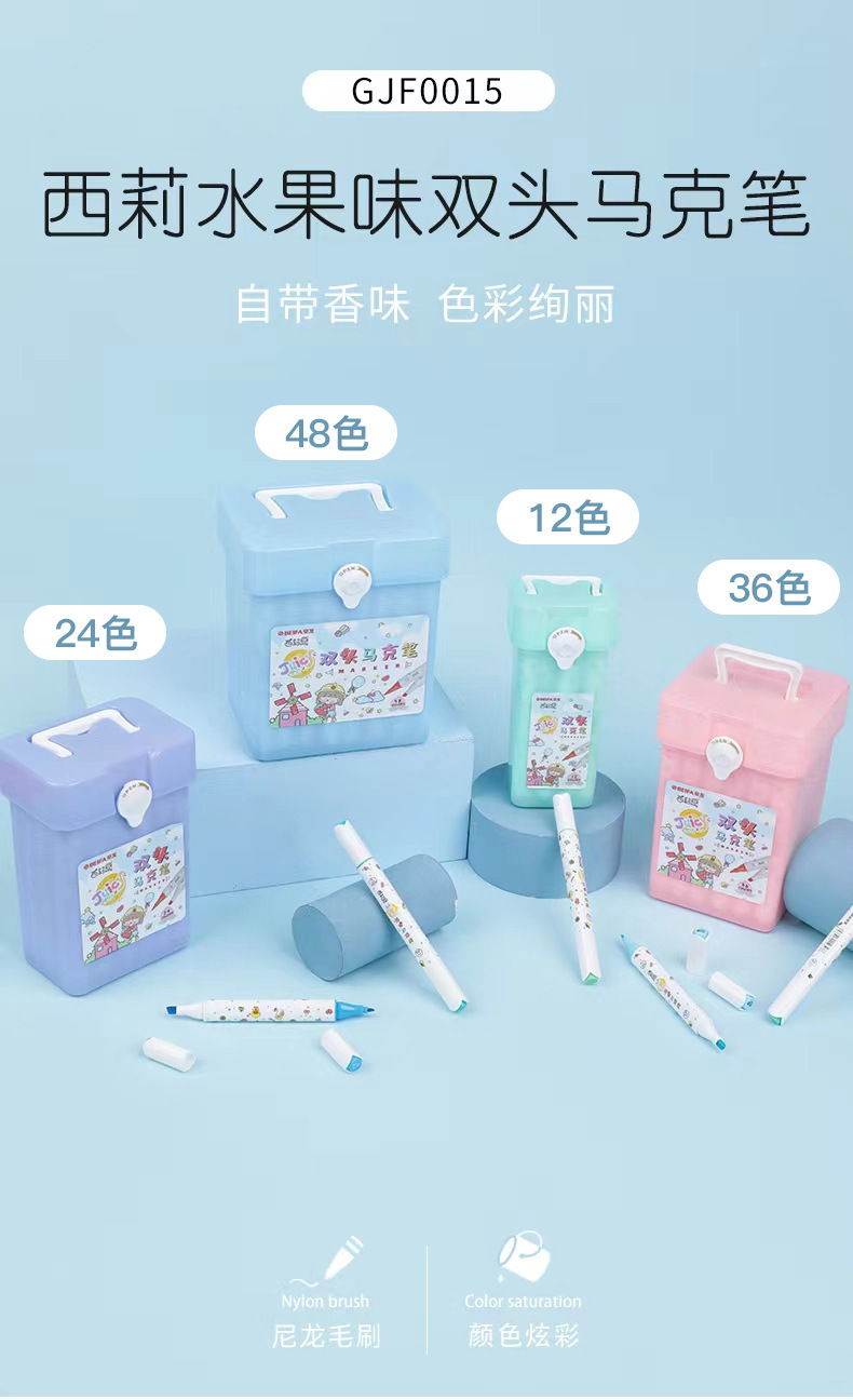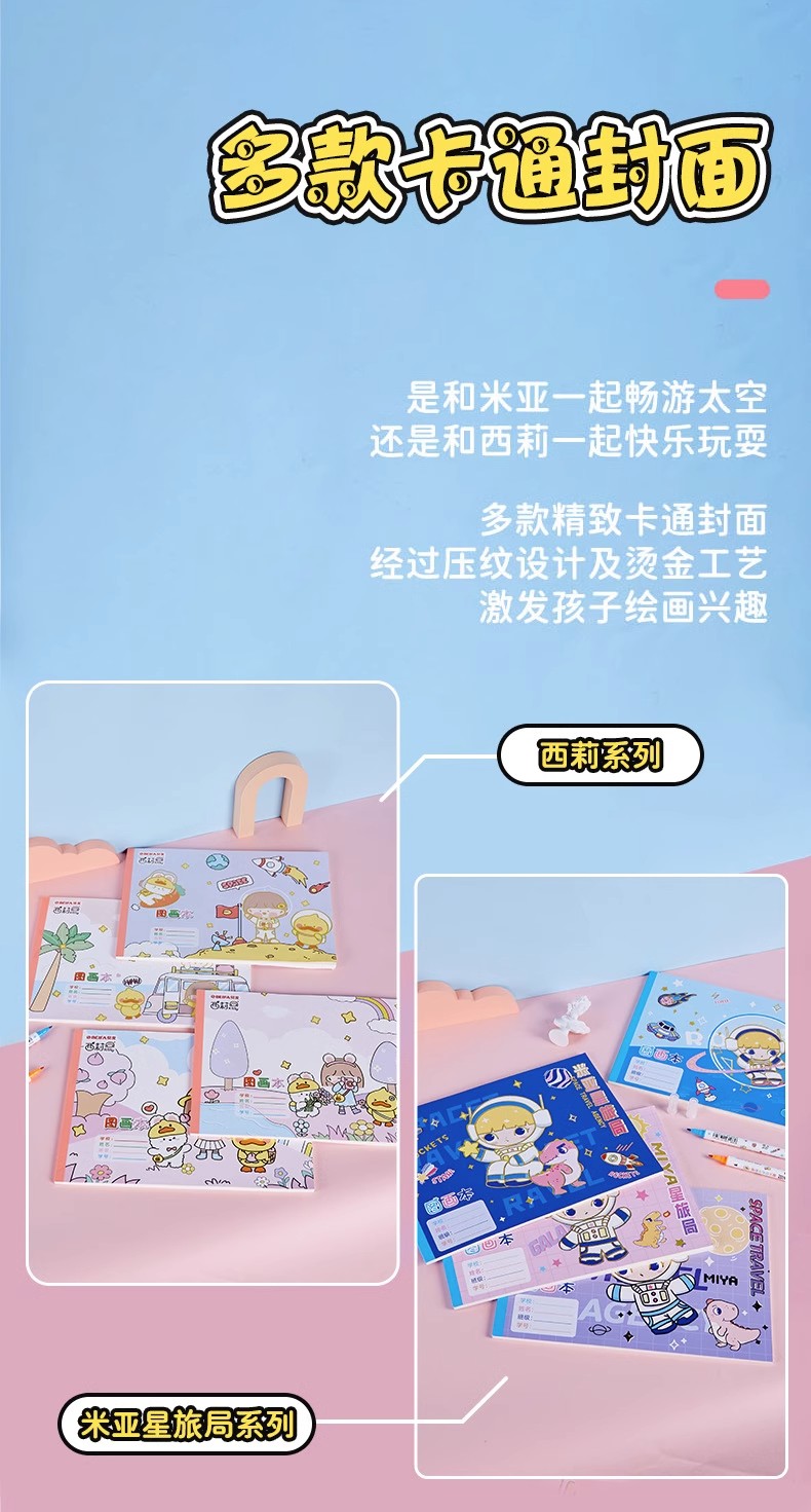 规格:美术勾线笔*1盒、西莉12色水果味双头马克笔12支/盒、米亚星旅局A4图画本*2本(四个图案发货颜色随机)
