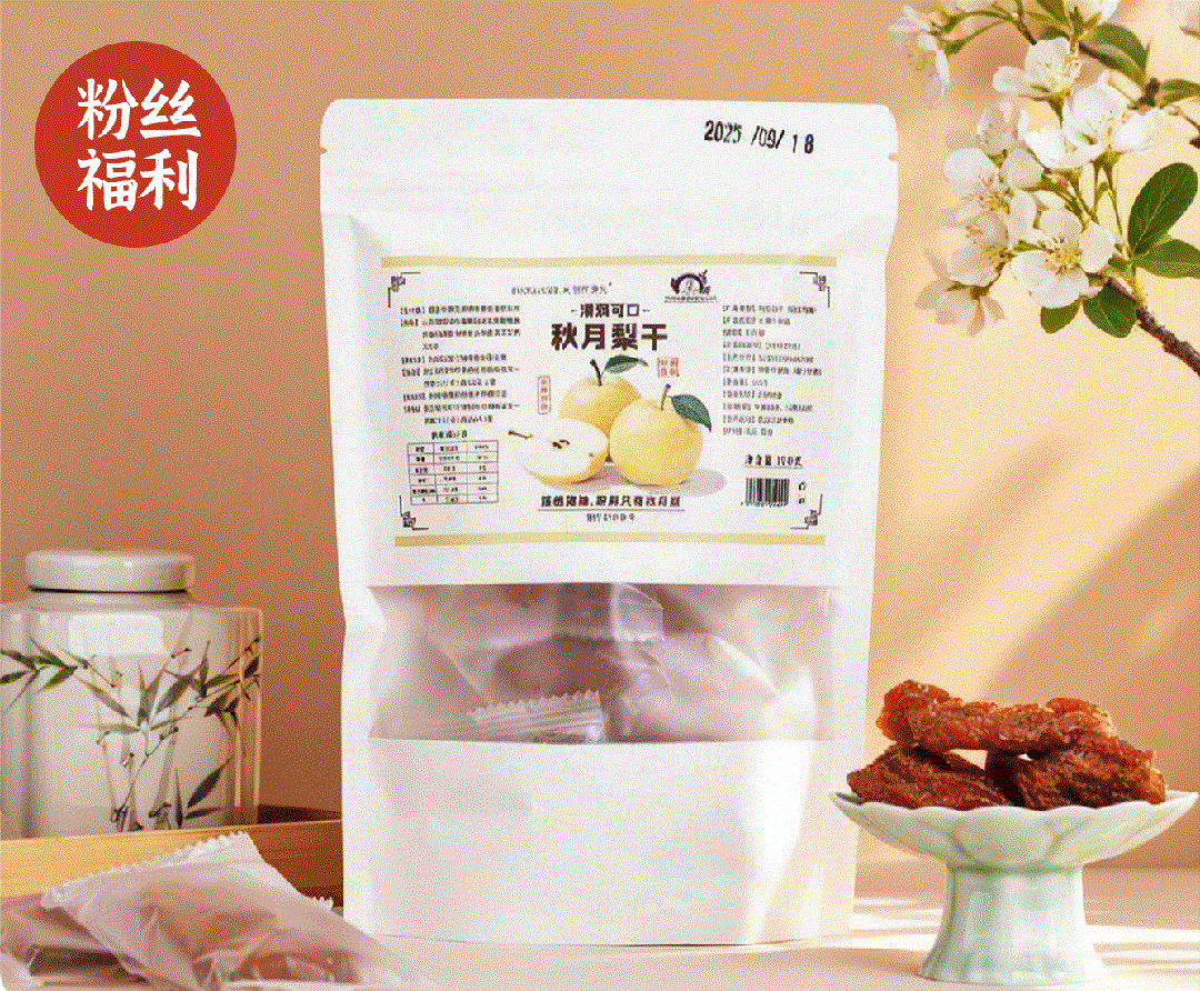 不管是自己吃来润.燥,还是送长辈当健康礼品,这款李时珍出品的秋月梨干都再合适不过。