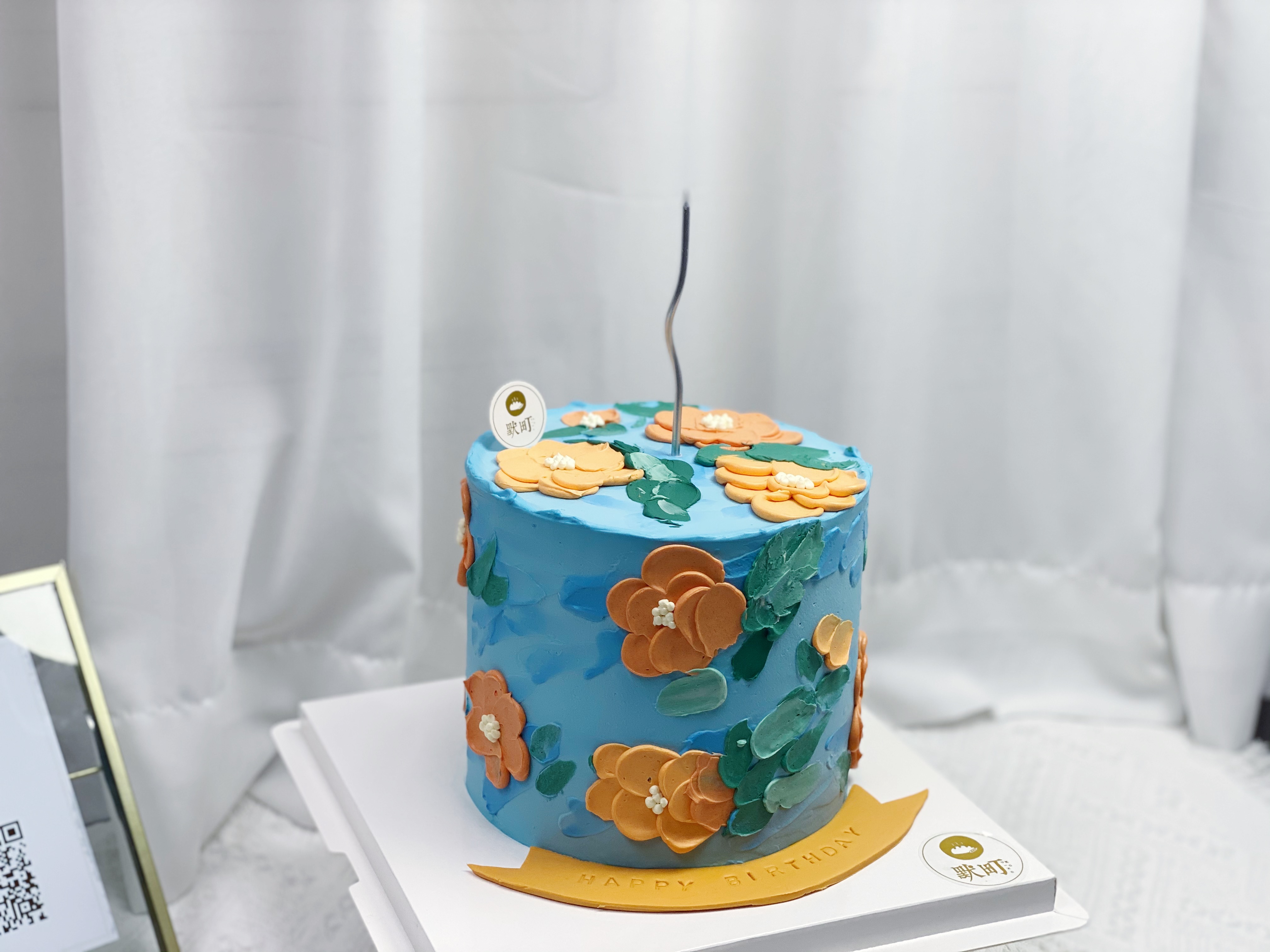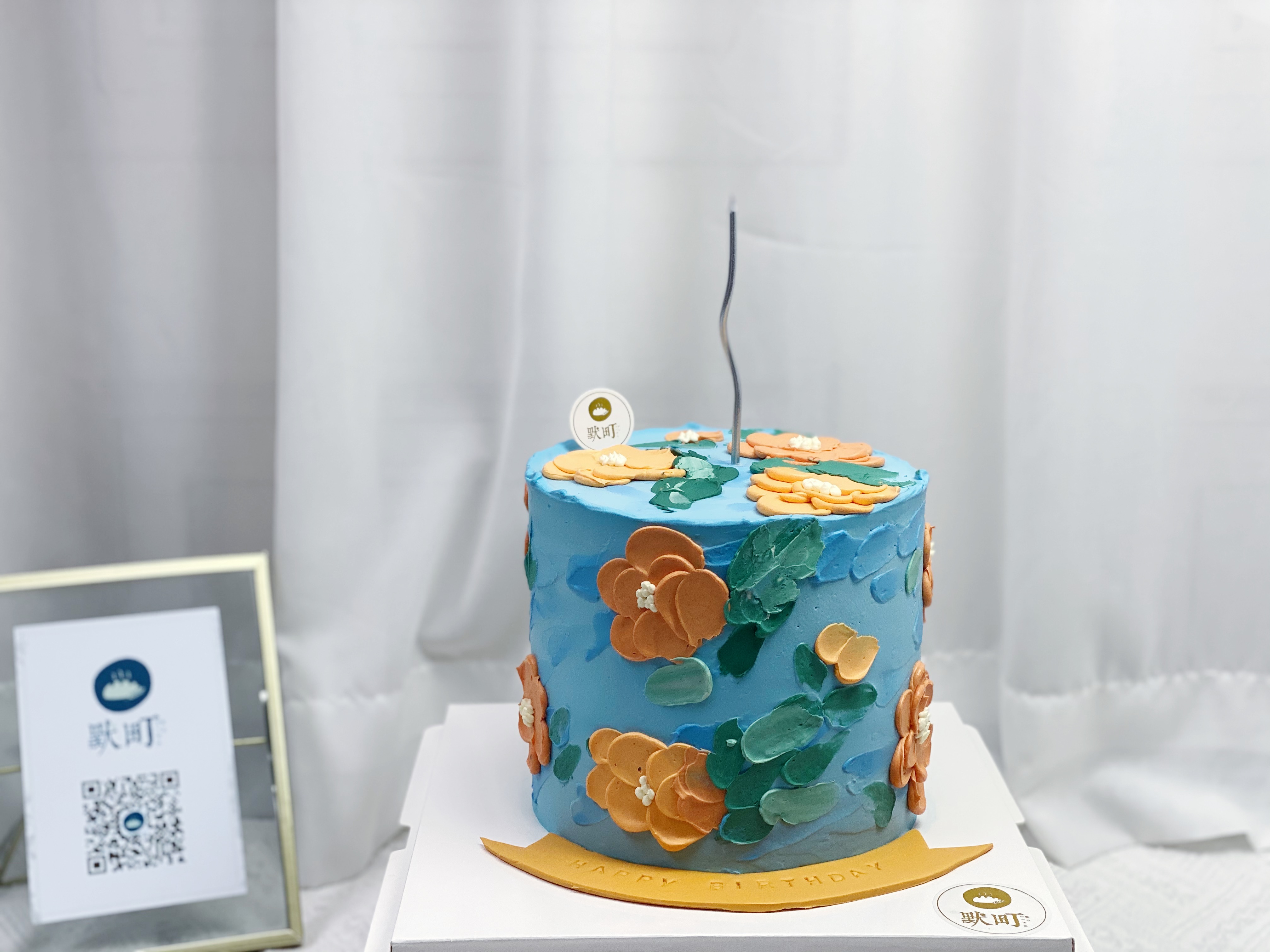 复古蓝+复古橘调手绘蛋糕