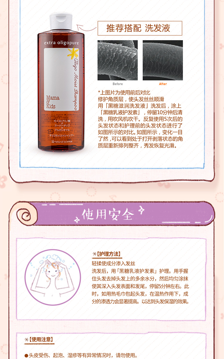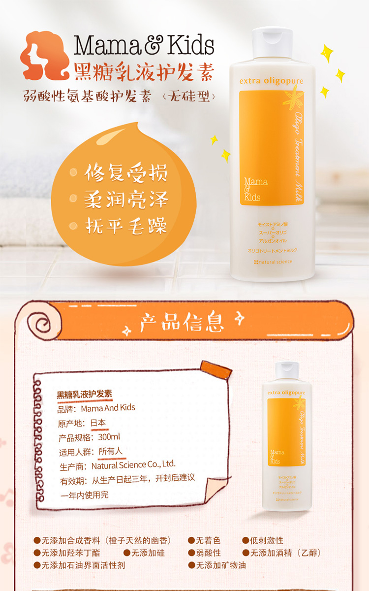 日本本土版,添加黑糖成分,有助于增加头发韧性,改善头皮发痒,减少脱发,配合黑糖洗发水使用效果更好。