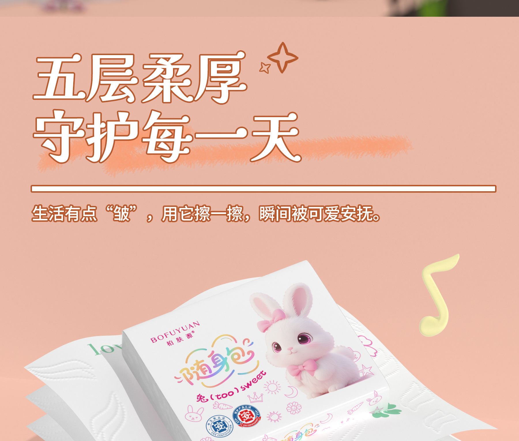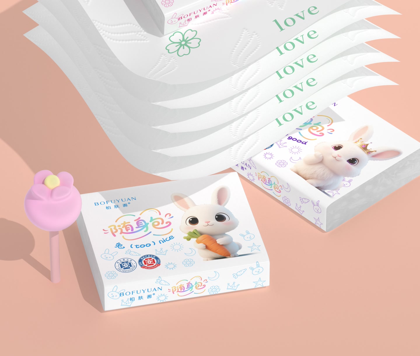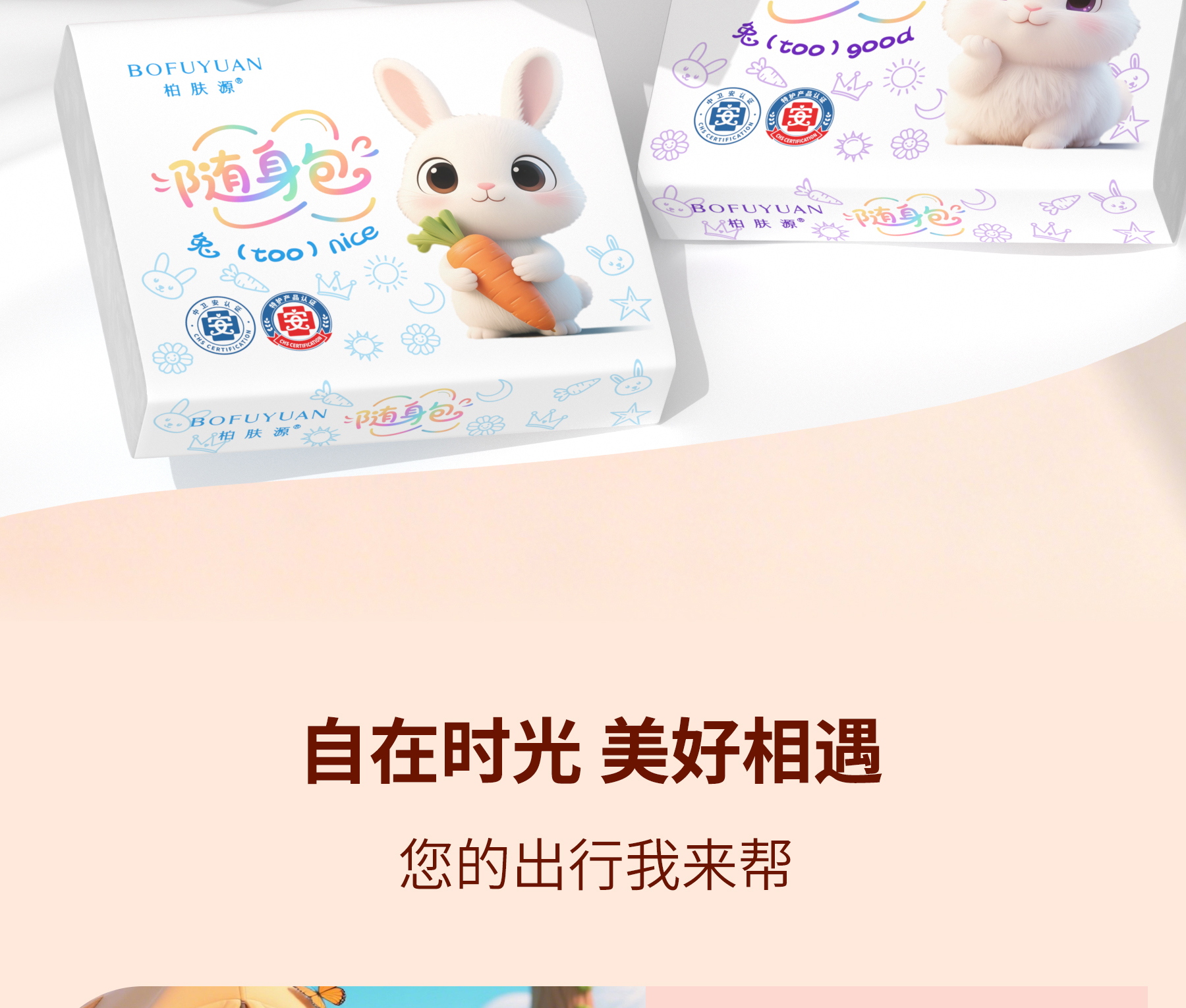 【50包随身包】柏肤源 兔子随身包印花抽取式面巾纸
