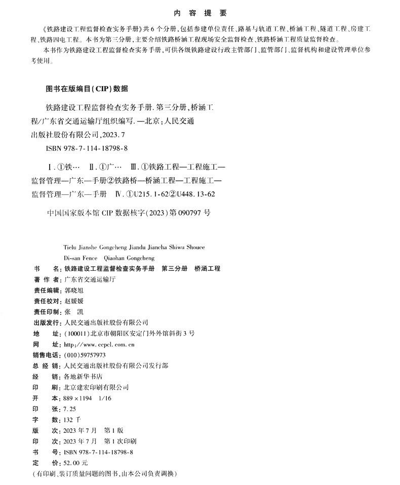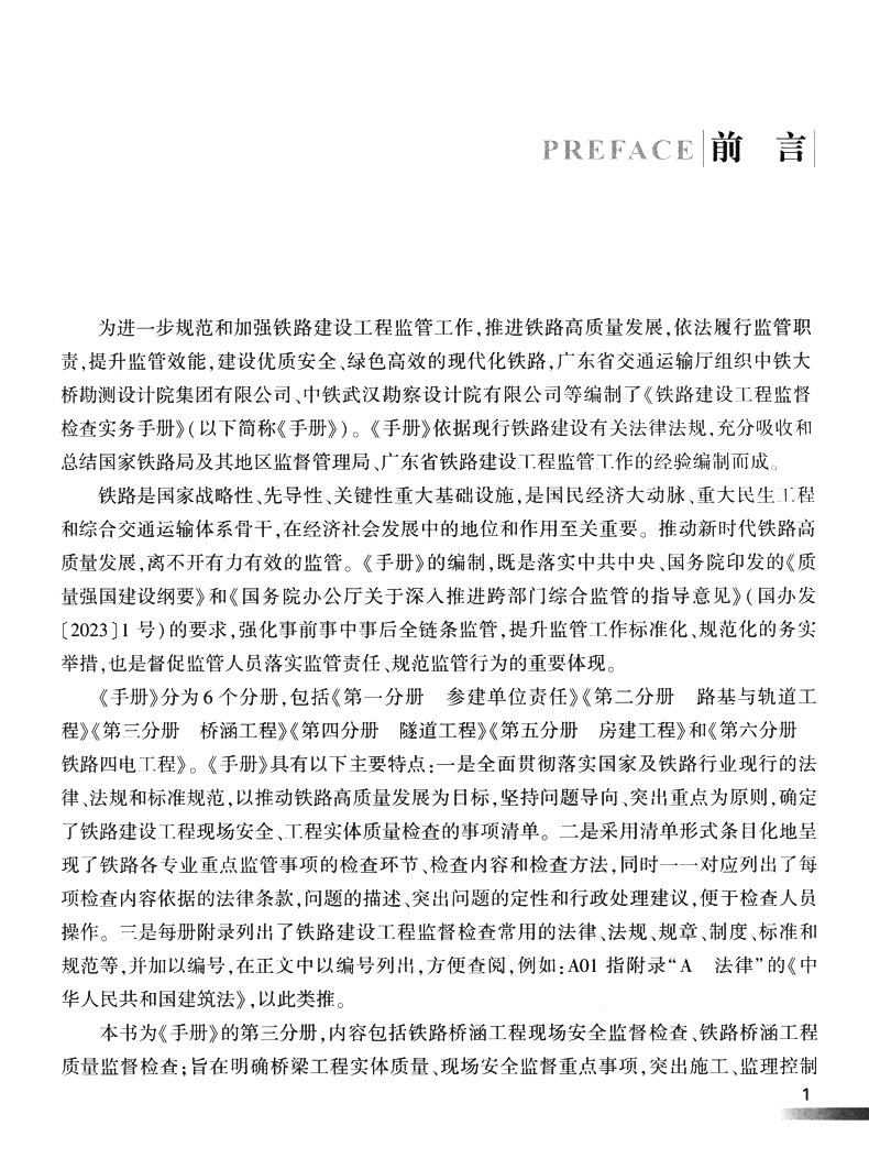 书名:铁路建设工程监督检查实务手册 第三分册 桥涵工程
