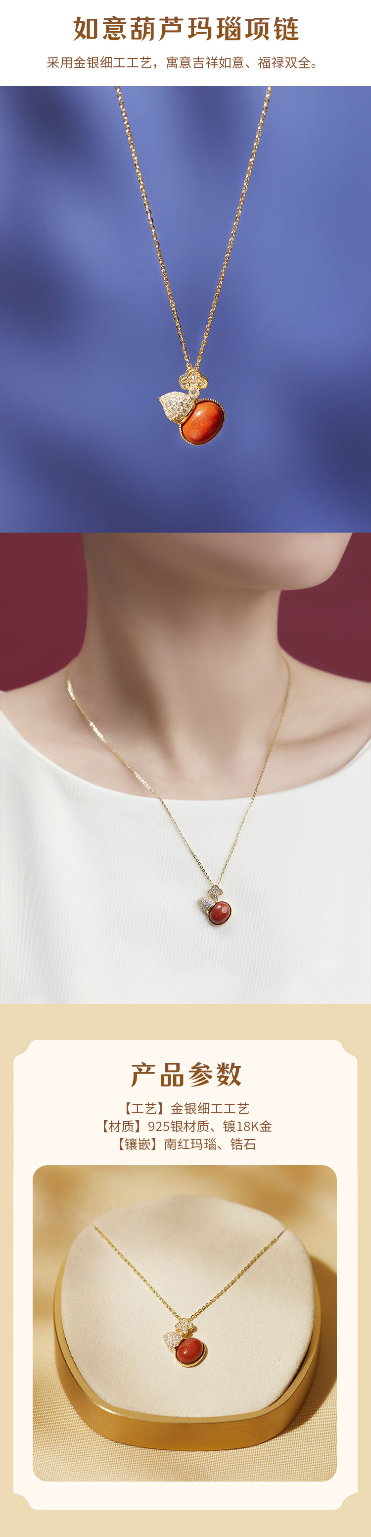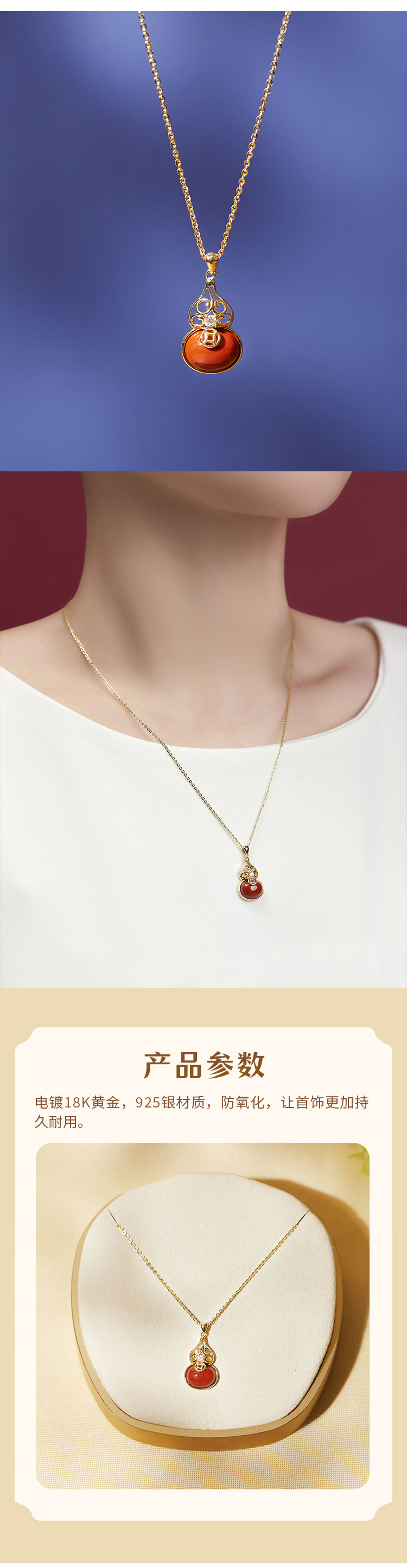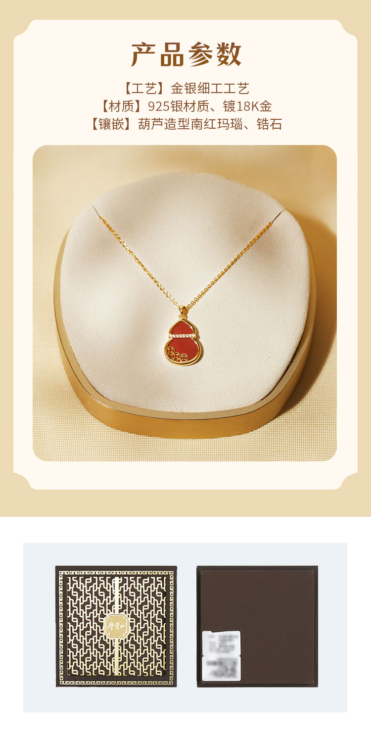 牛首山s925银项链气质中国风红色葫芦耳环小巧精致高级感时尚百搭