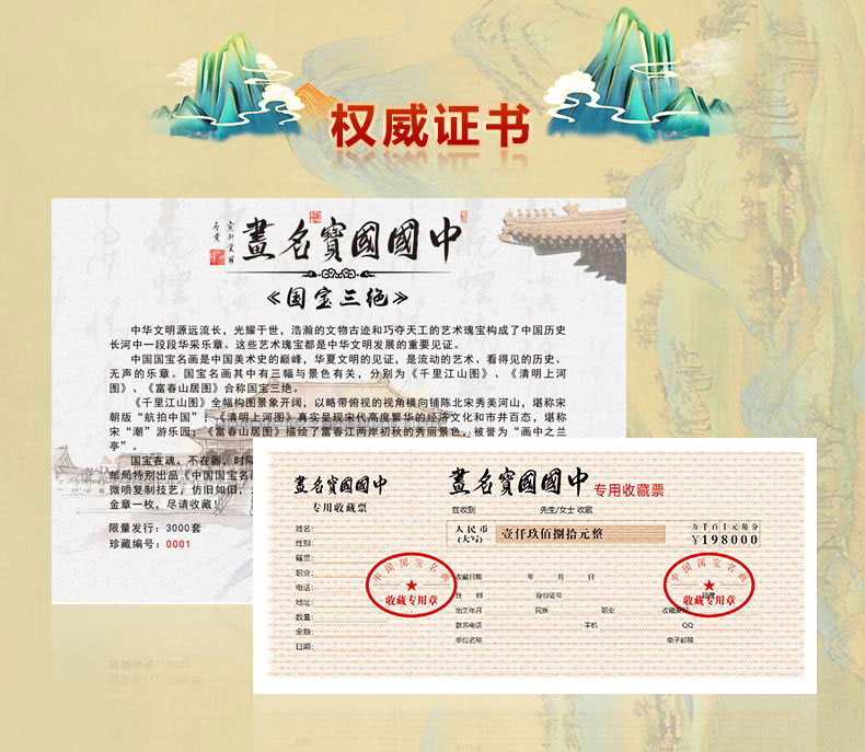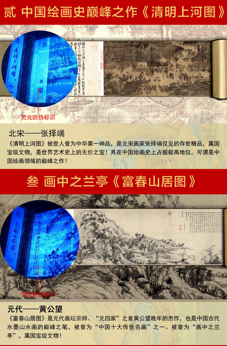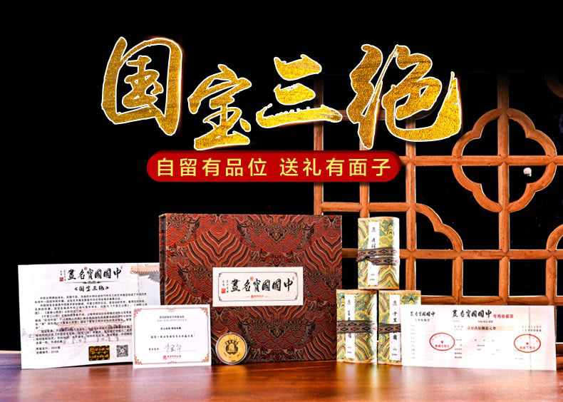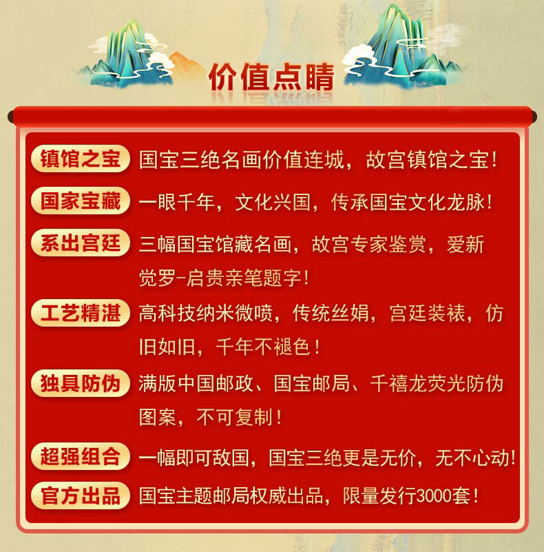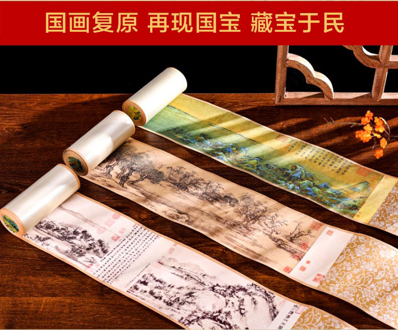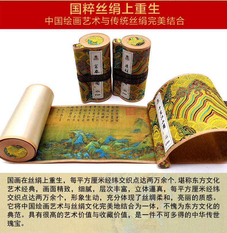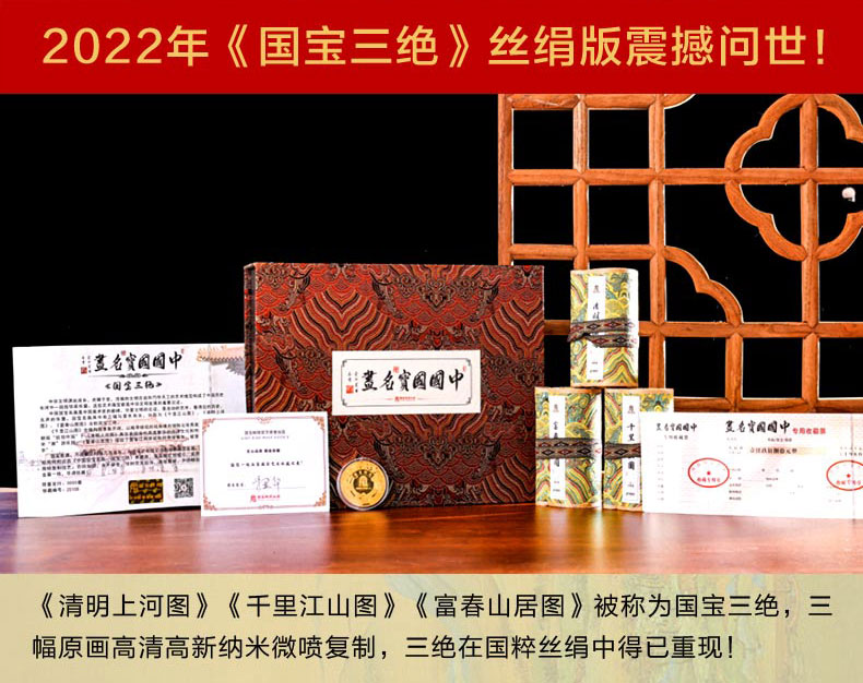 中国名画国宝三绝丝绢版