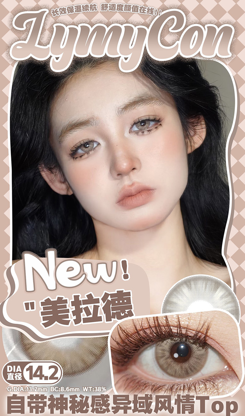 Lymycon 美拉德 半年抛 两片 14.2mm 参考着色 13.2mm 基弧 8.6 含水 38% 新锐国货