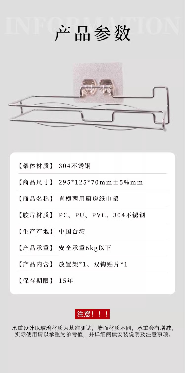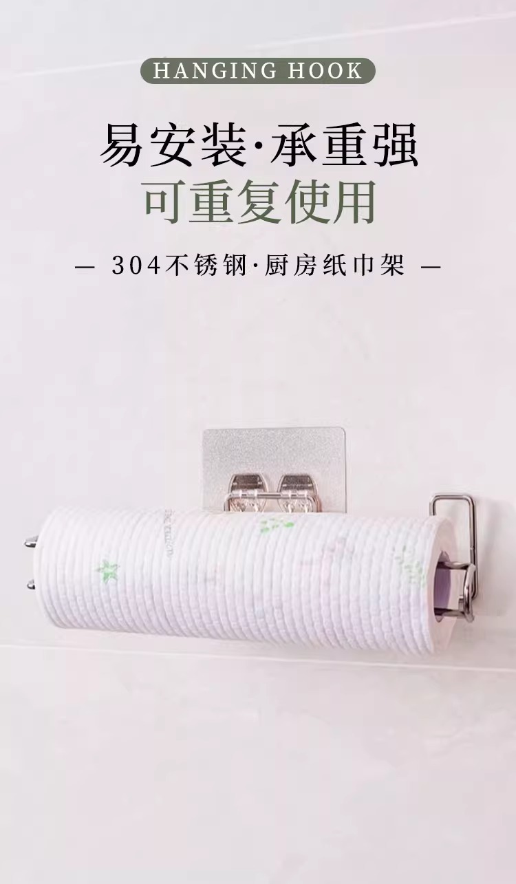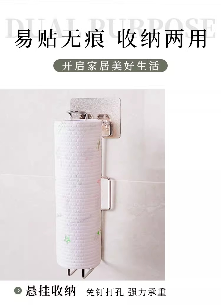 【清仓特惠4.5折】奇丽屋免打孔强力粘钩多用途挂钩毛巾架壁挂式直横两用厨房纸巾架【不支持补差,非质量问题不退不换】S