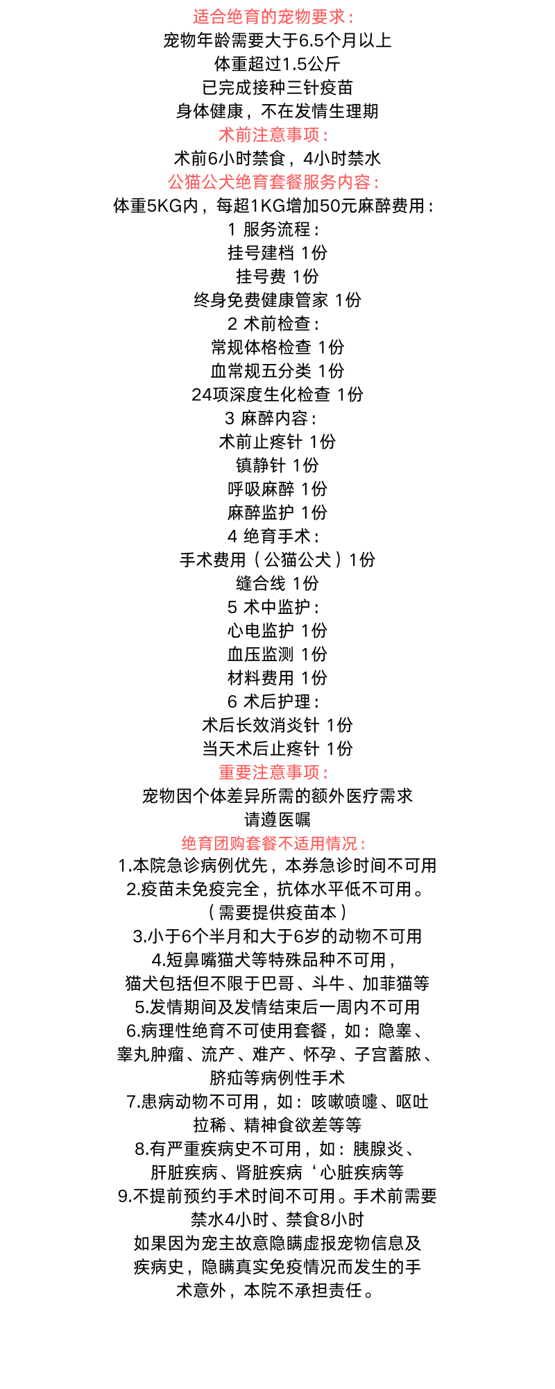 公犬/公猫全面深度体检超声刀绝育全包套餐