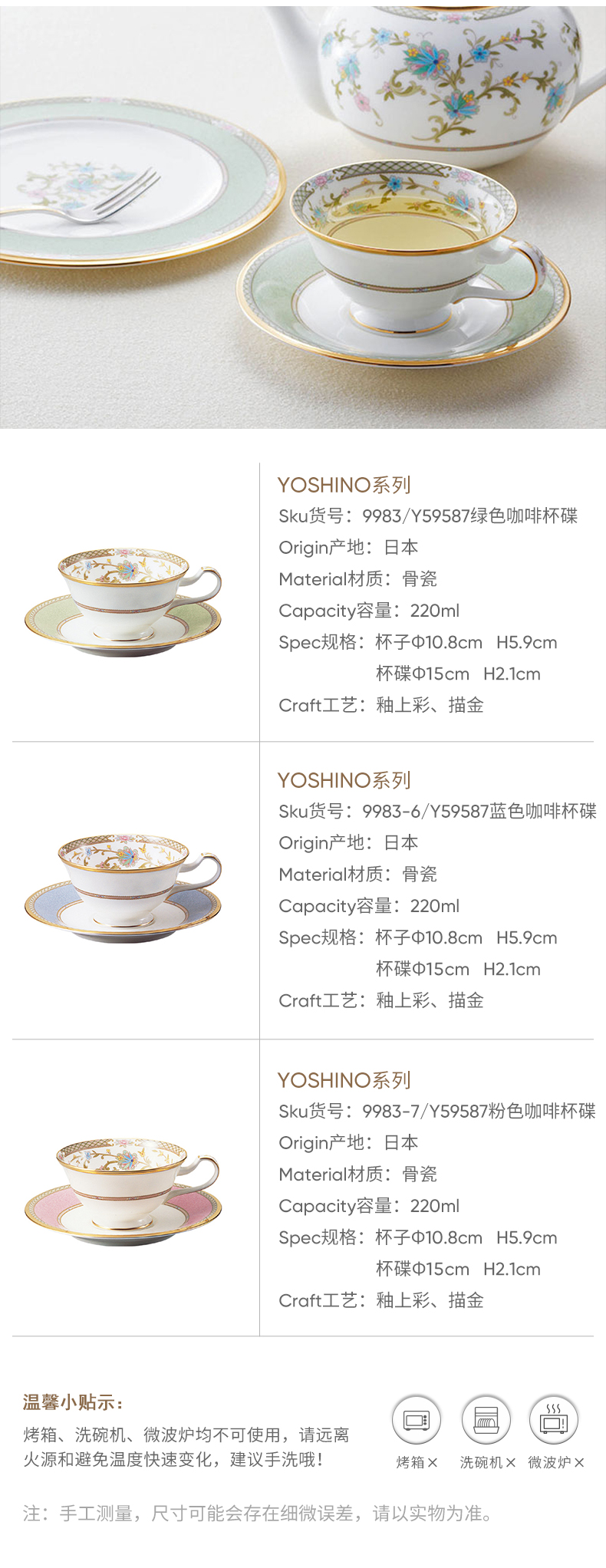 日本则武吉野樱花红茶杯碟220CC(绿)