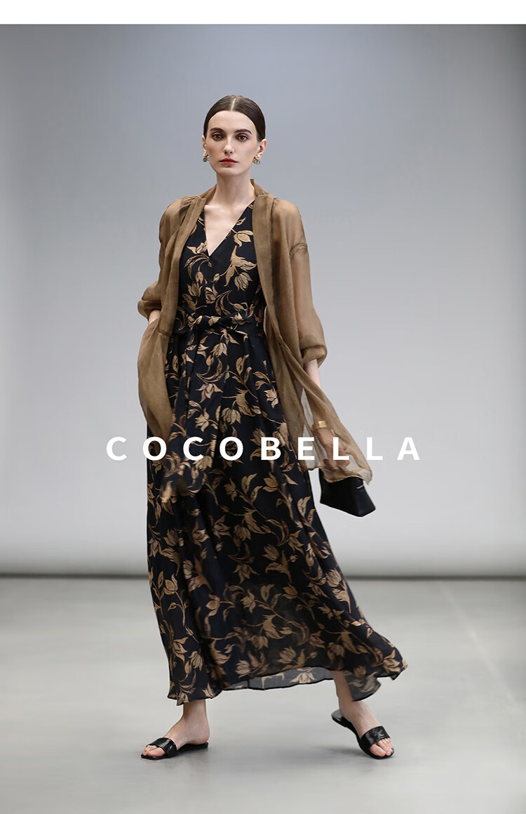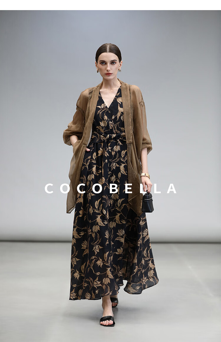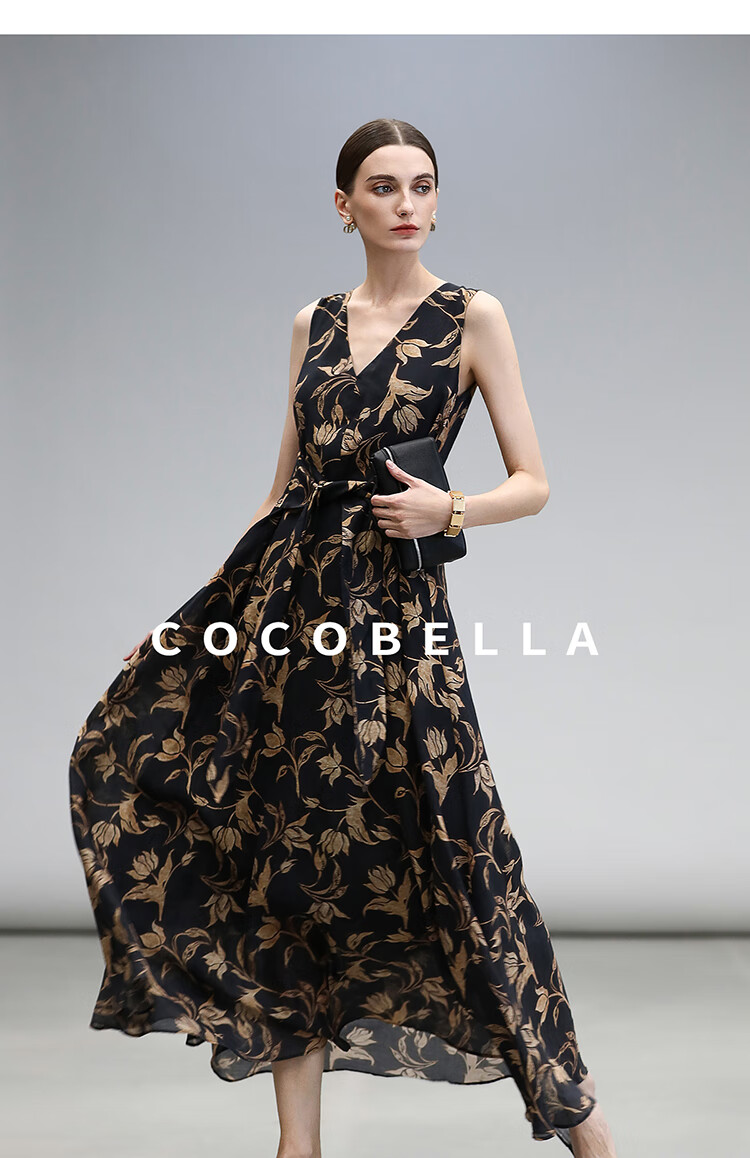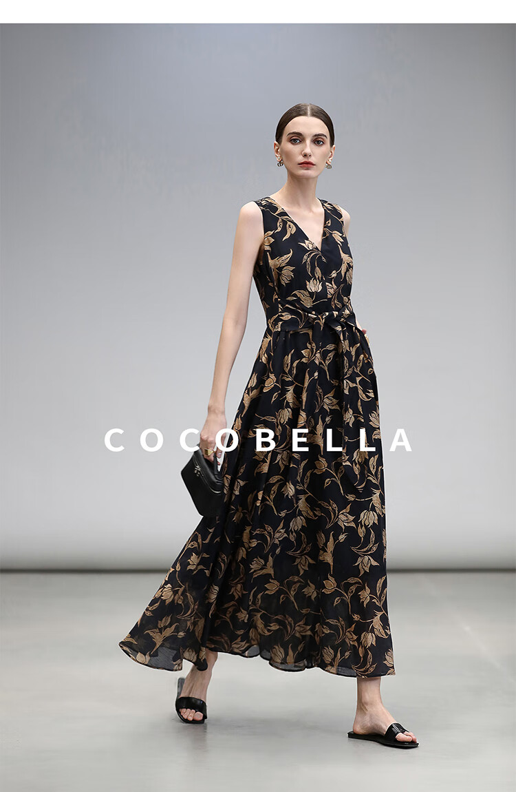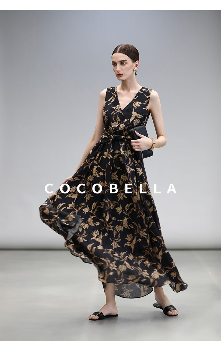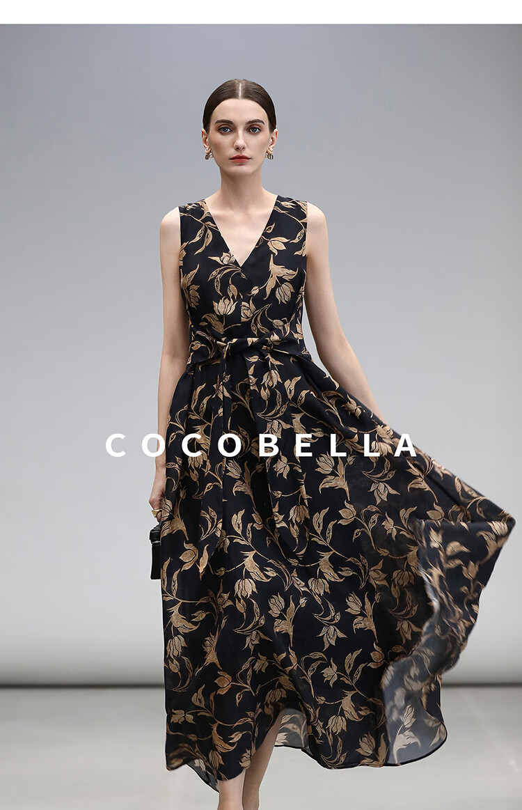 COCOBELLA莱赛尔花卉大摆连衣裙度假风深V领大女主长裙FR0058