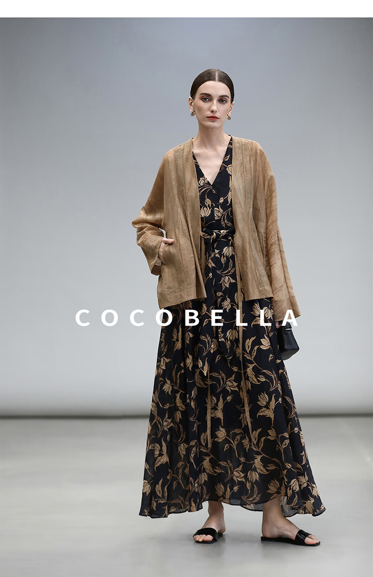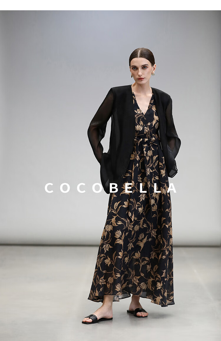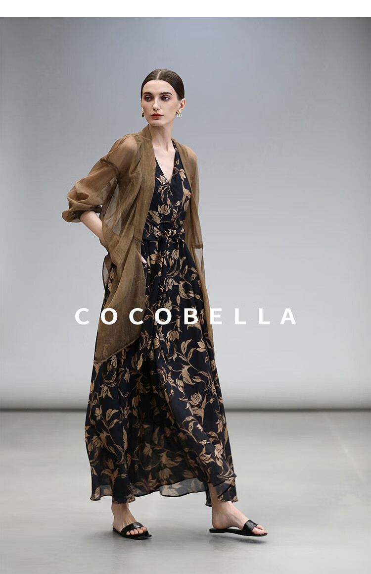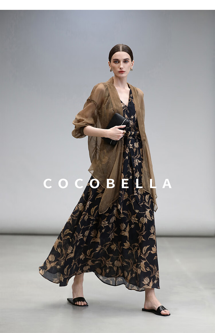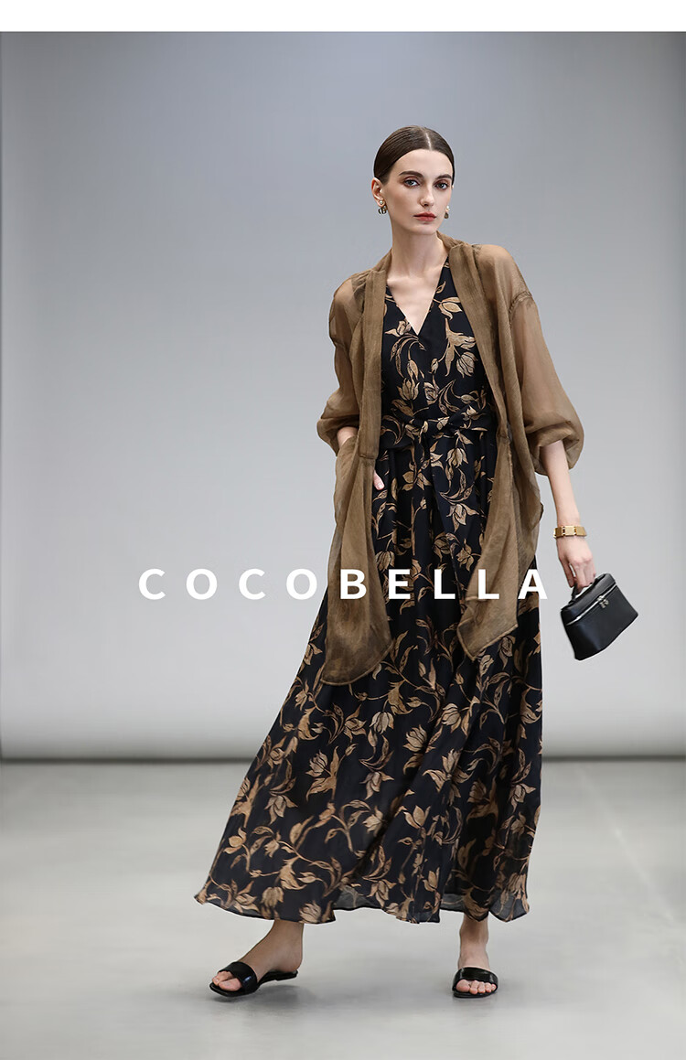 COCOBELLA莱赛尔花卉大摆连衣裙度假风深V领大女主长裙FR0058