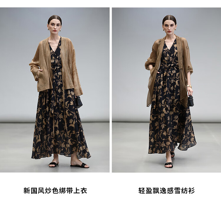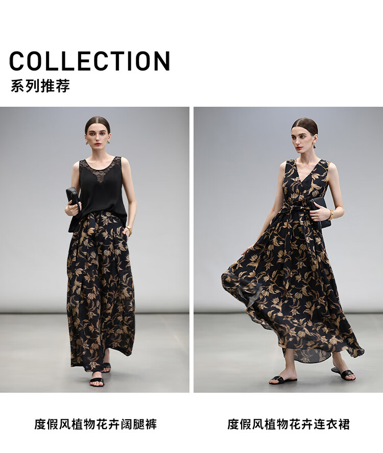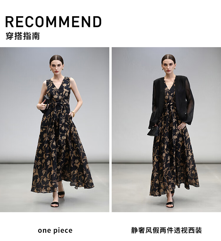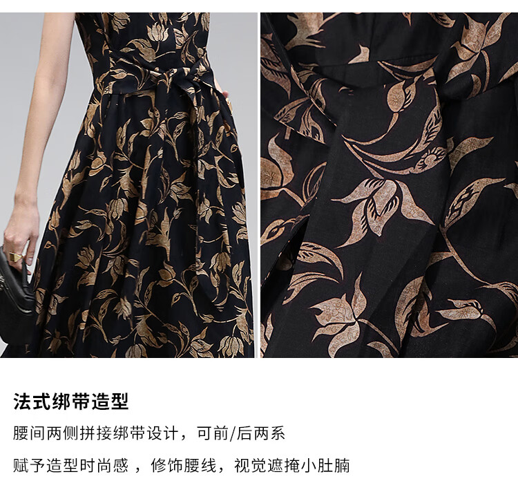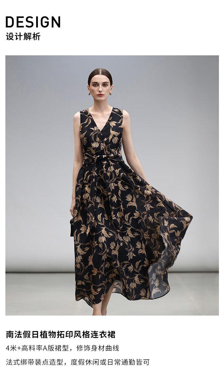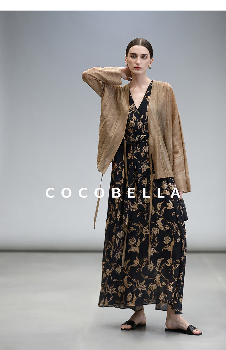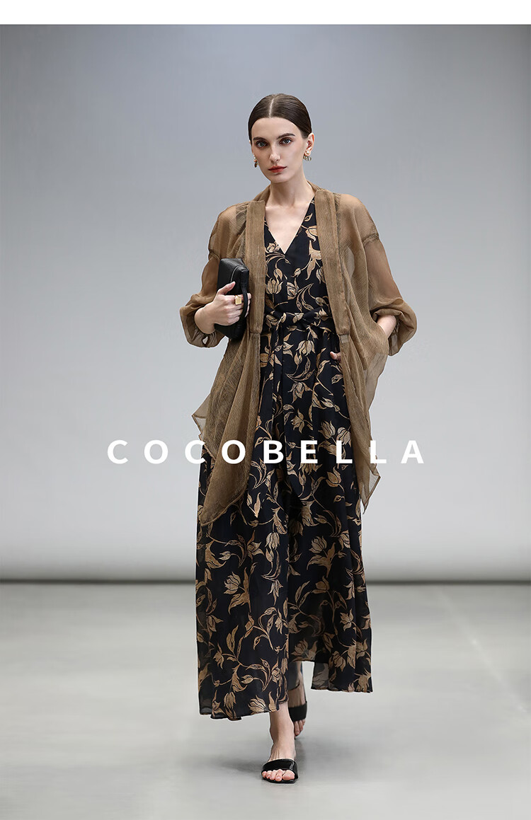 COCOBELLA莱赛尔花卉大摆连衣裙度假风深V领大女主长裙FR0058