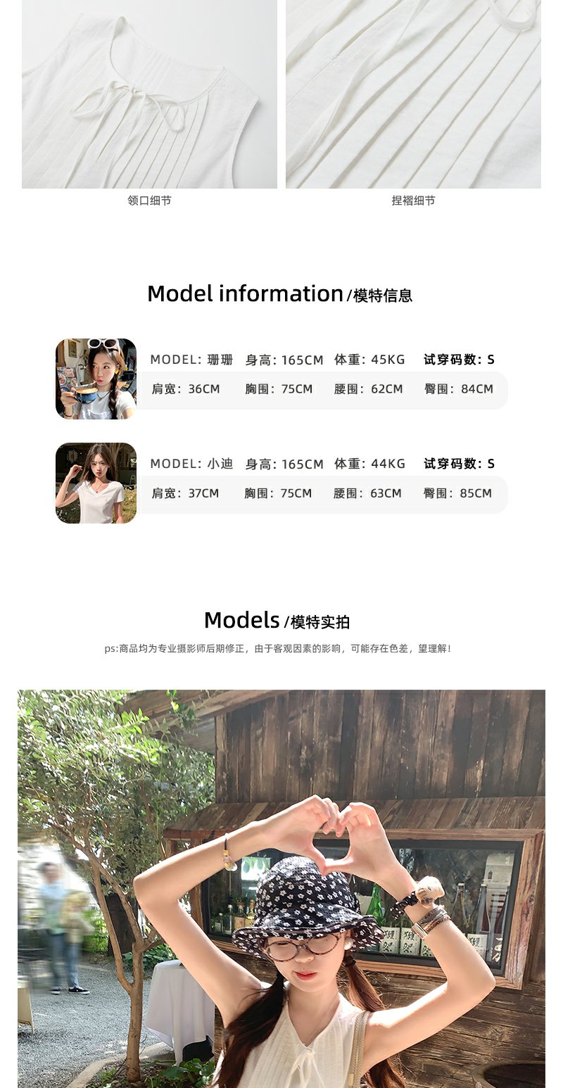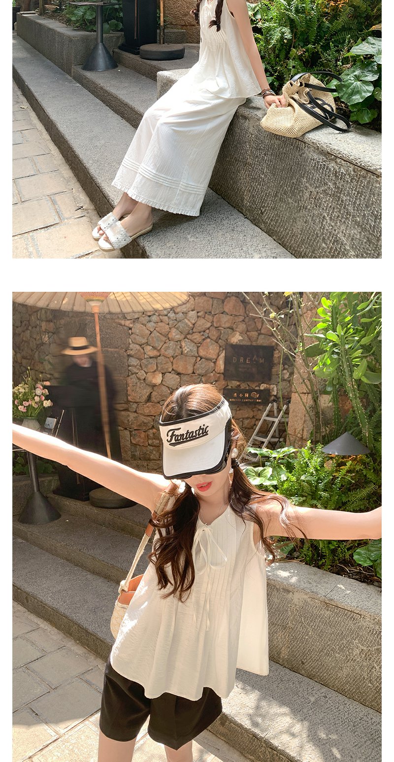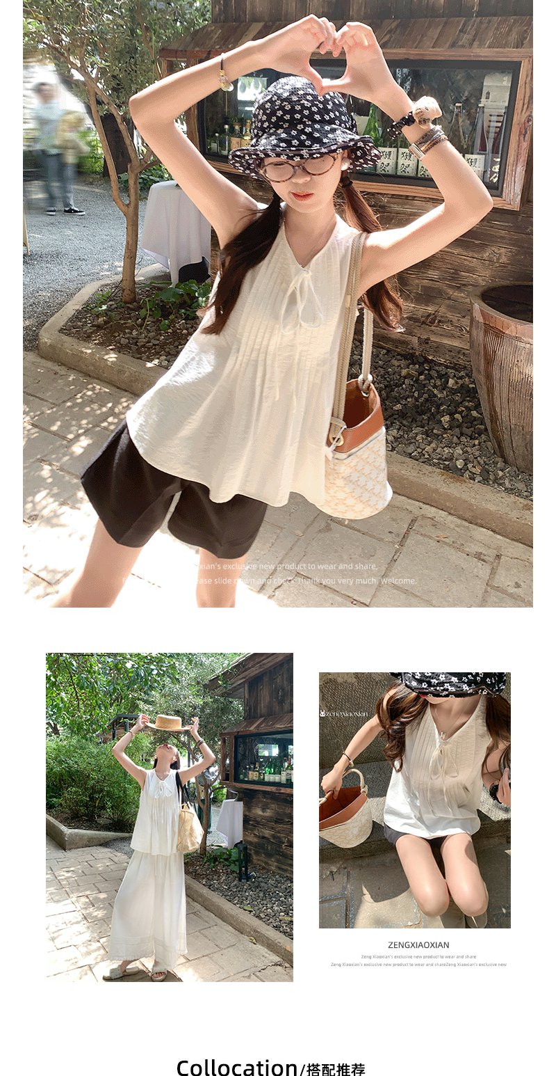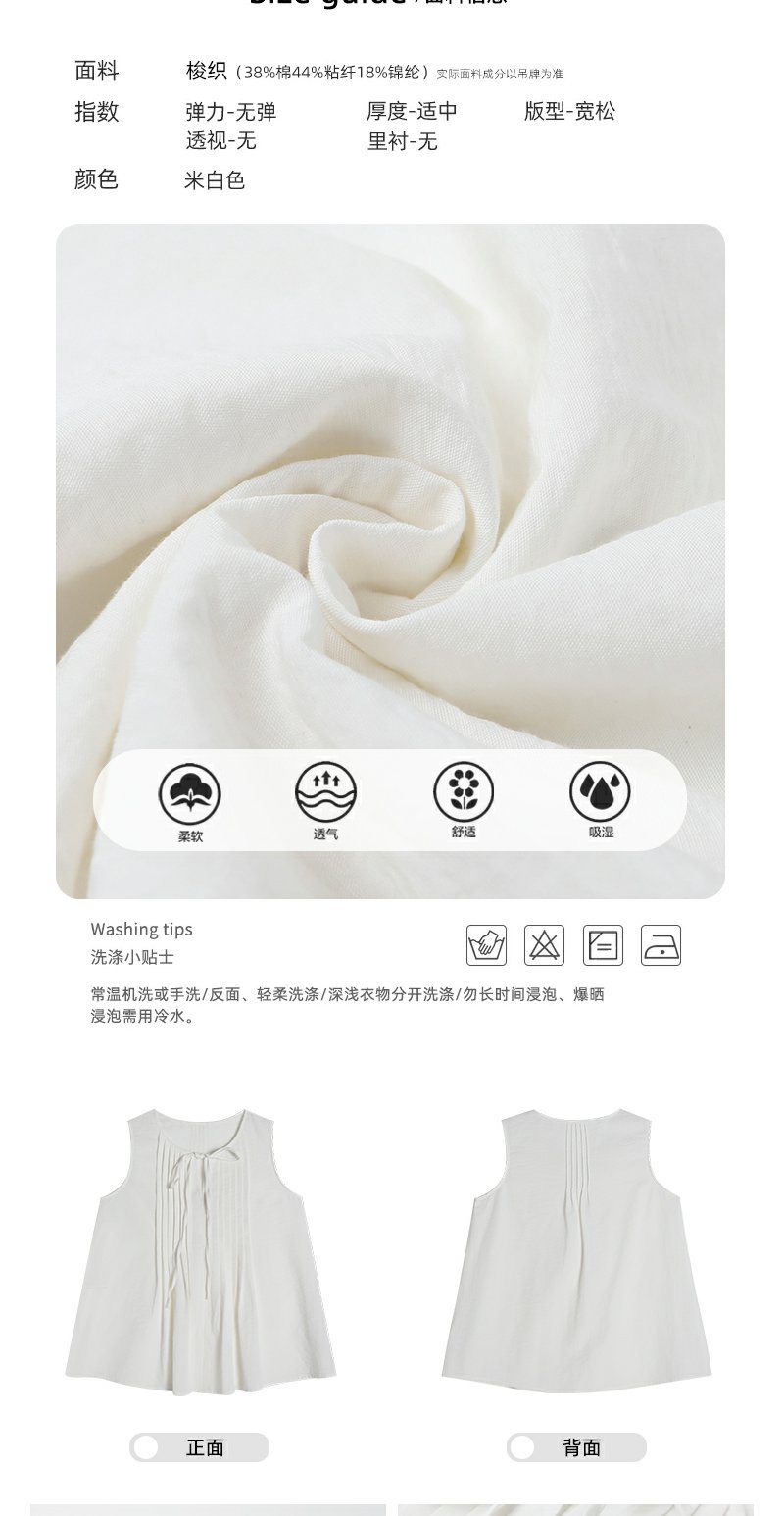 <曾小咸推荐>设计感米白色压褶系带无袖背心衬衫