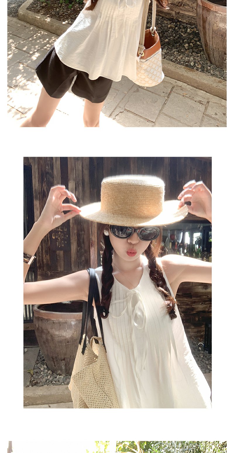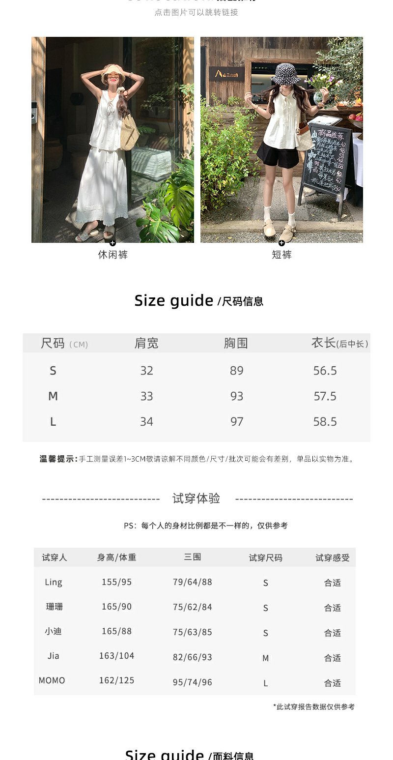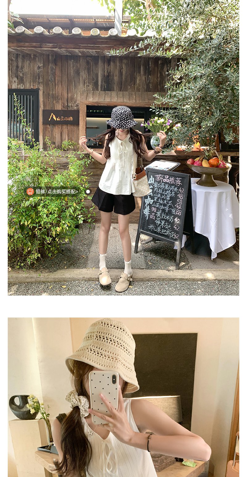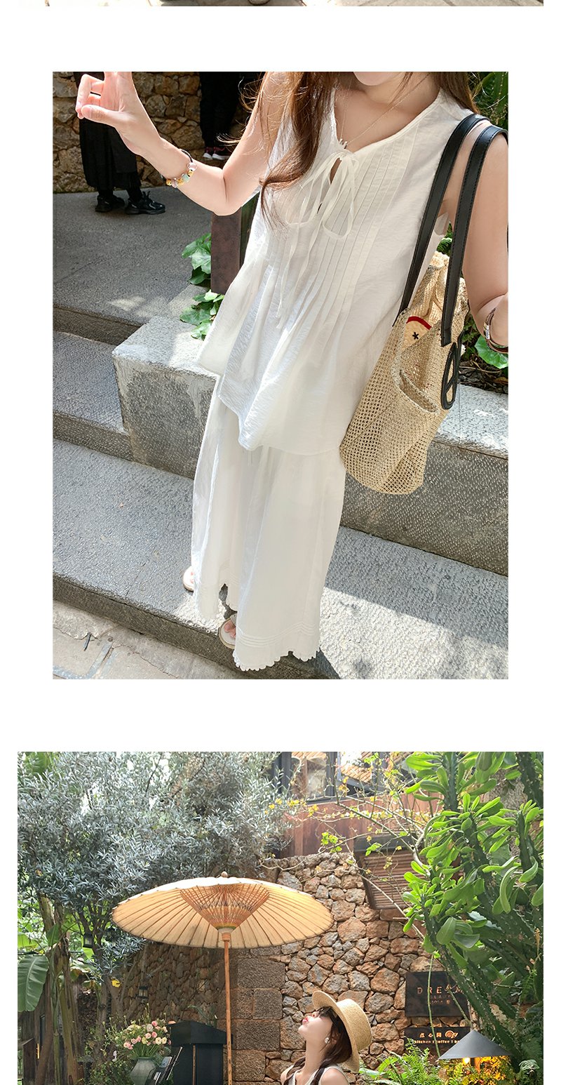<曾小咸推荐>设计感米白色压褶系带无袖背心衬衫