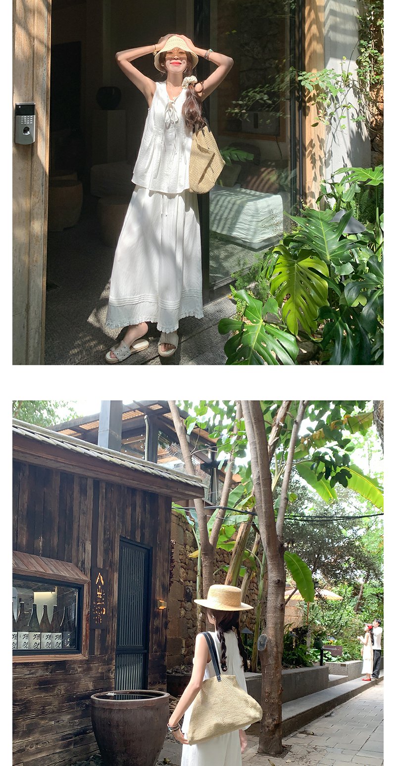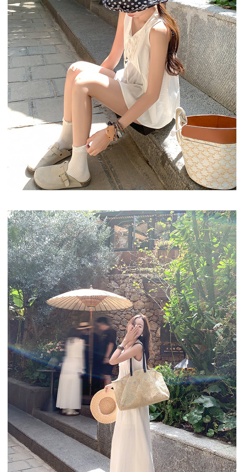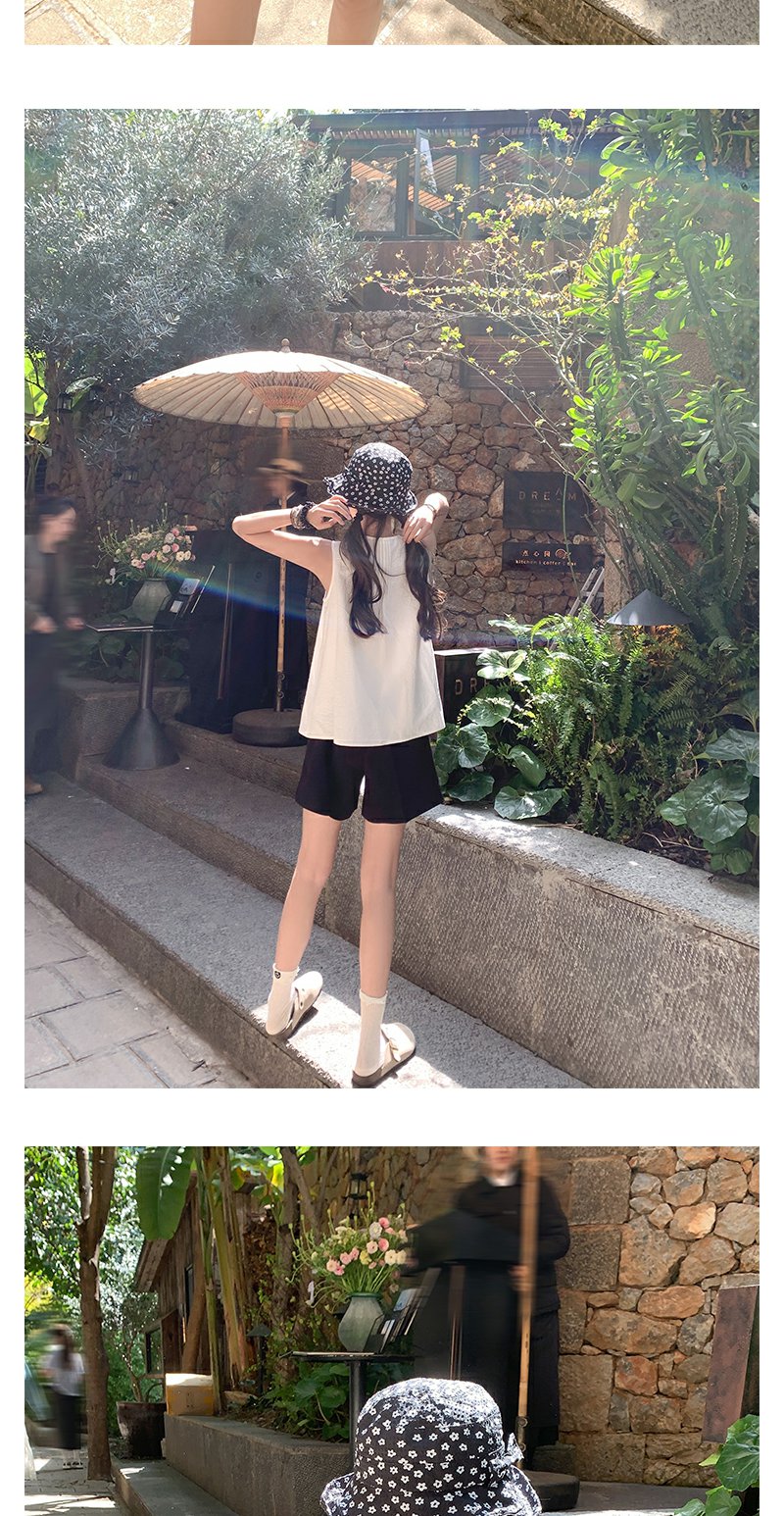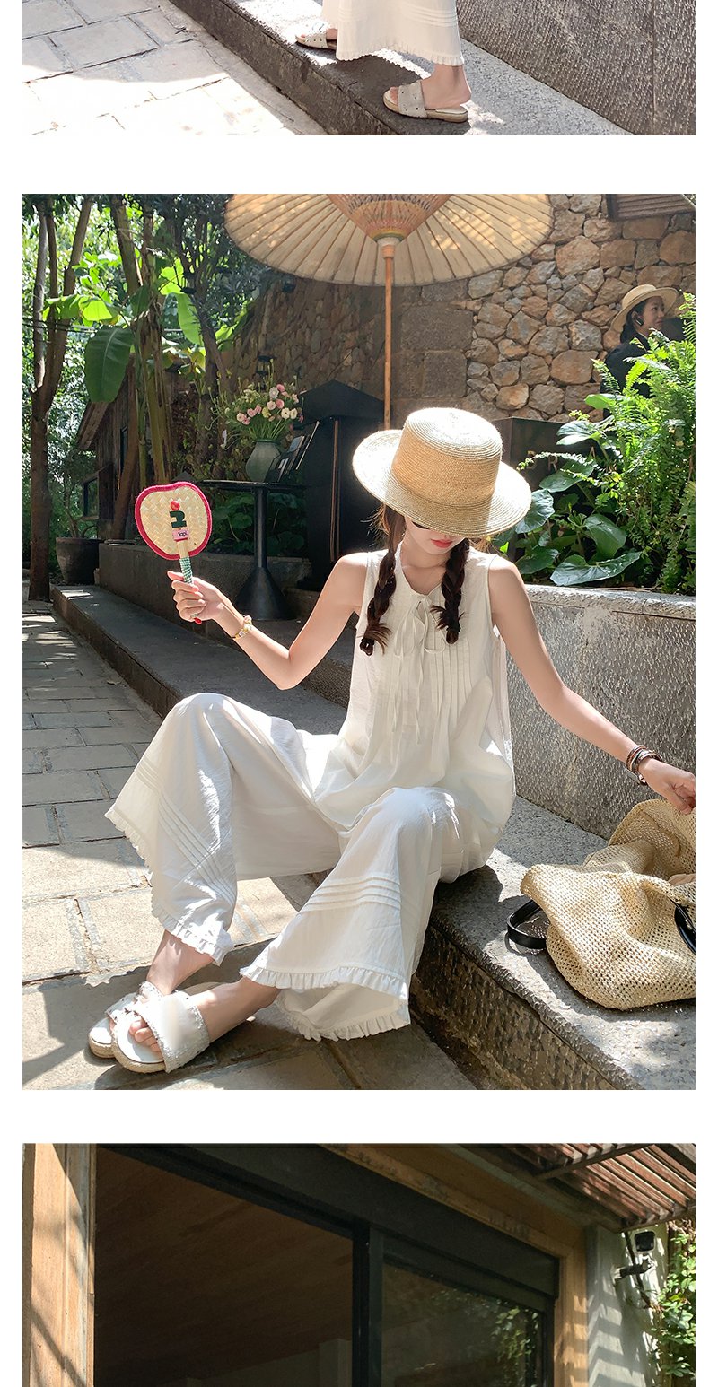 <曾小咸推荐>设计感米白色压褶系带无袖背心衬衫