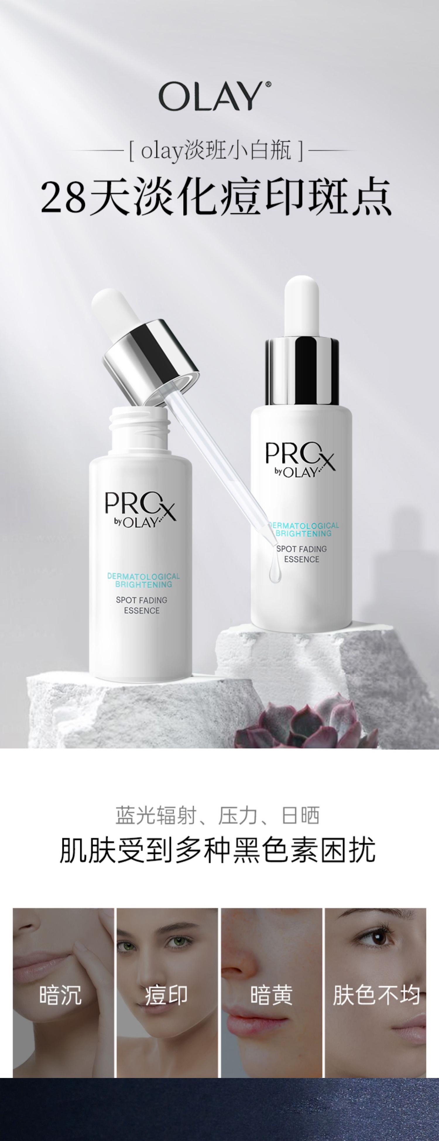 【色素克星,肌肤焕白专家】OLAY玉兰油淡斑精华小白瓶 ProX方程式烟酰胺美白淡痘印圣品 均匀肤色,击退暗黄 40ml*2瓶 加AHC新款B5破尿酸面膜5片 淡斑界的万能砖