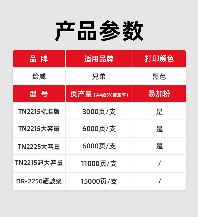 绘威TN-2215易加粉粉盒 适用兄弟MFC7360 7470D HL2240D 2890 DCP7060D 7057 2250硒鼓brother打印机墨盒2225