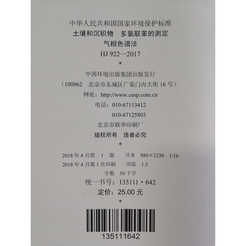 HJ 922—2017土壤和沉积物 多氯联苯的测定气相色谱法 国家标准GB 环境保护 环境科学 135111642