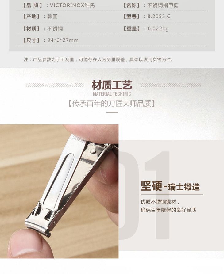 维氏军刀VI-指甲刀<8.2055.C>不锈钢指甲刀小号进口家用成人指甲钳修指甲美甲指甲锉