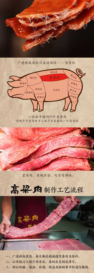 广进祥高梁肉猪里脊肉温州特产小吃即食猪肉干肉脯零食408g礼盒